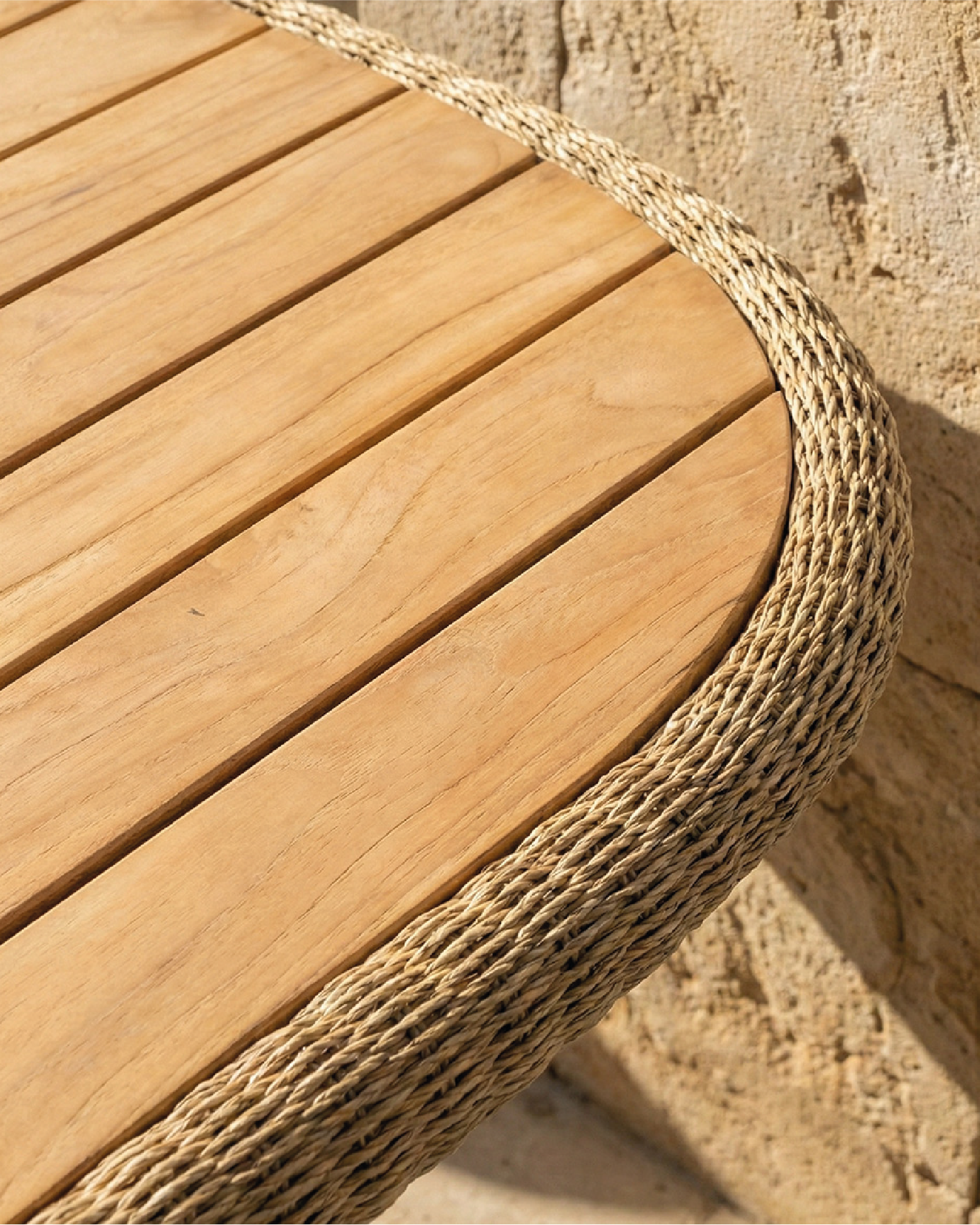 Taula oval de menjador ratà sintètic i fusta teca 180x110
