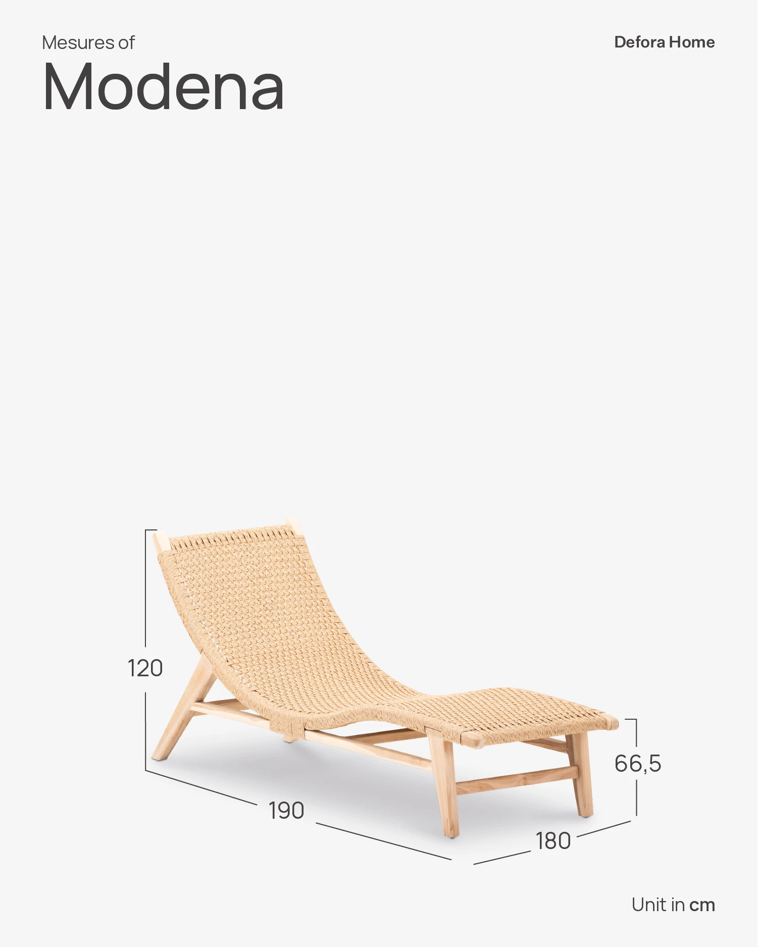 La col·lecció Mòdena pretén conjuminar el món indoor i outdoor sota el mateix prisma. Treure el disseny propi de col·leccions indoor a l'exterior jugant amb materials amb alta resistència a l'exterior. En aquest cas la fusta de teca i el ratà sintètic trenat a mà són els encarregats d' aquesta aportació.