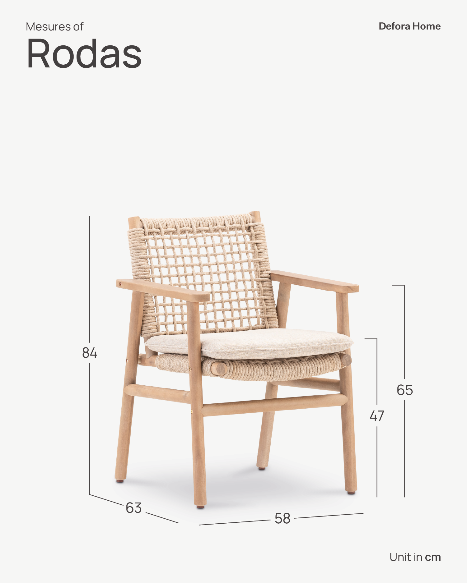Drechselholz und Seil in Beigetönen sind die Protagonisten dieser Rodas-Kollektion. Die breiten und dicken Holzlatten zusammen mit der Herstellung von Tatami-Kissen verleihen der Reihe einen entspannten Charakter.
