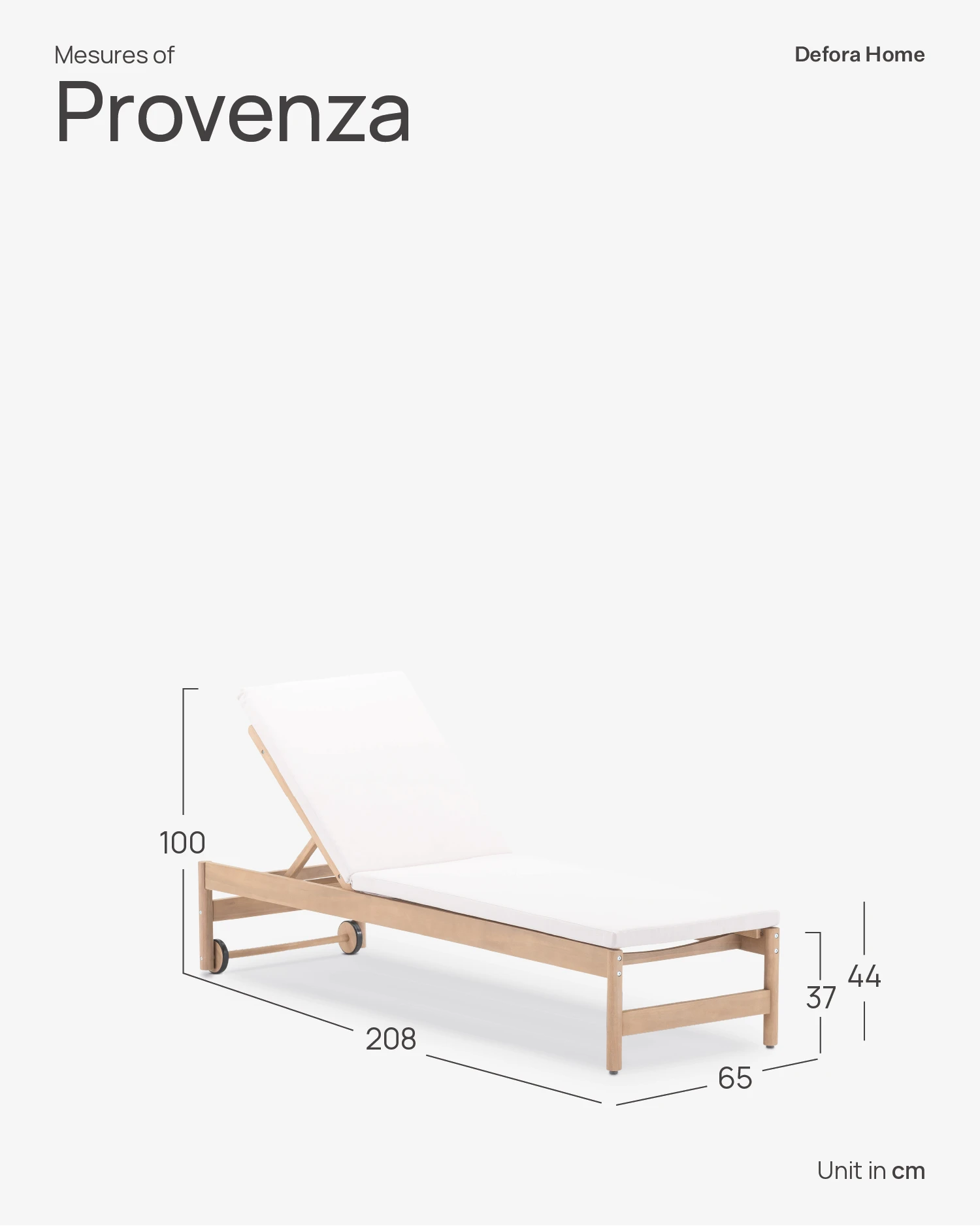 Sonnenliege aus Akazienholz aus der Provence. Die Sonnenliege hat Räder für eine einfache Bewegung und einen einfachen Transport. Es hat eine Rückenlehne, die in 5 Positionen geneigt werden kann, um sich optimal zu sonnen. Das Untergestell besteht aus Textilene und kann auch ohne Kissen verwendet werden. Das abnehmbare beige Polyesterkissen ist im Lieferumfang enthalten. Sie können es mit den anderen Elementen der Provence-Familie kombinieren.