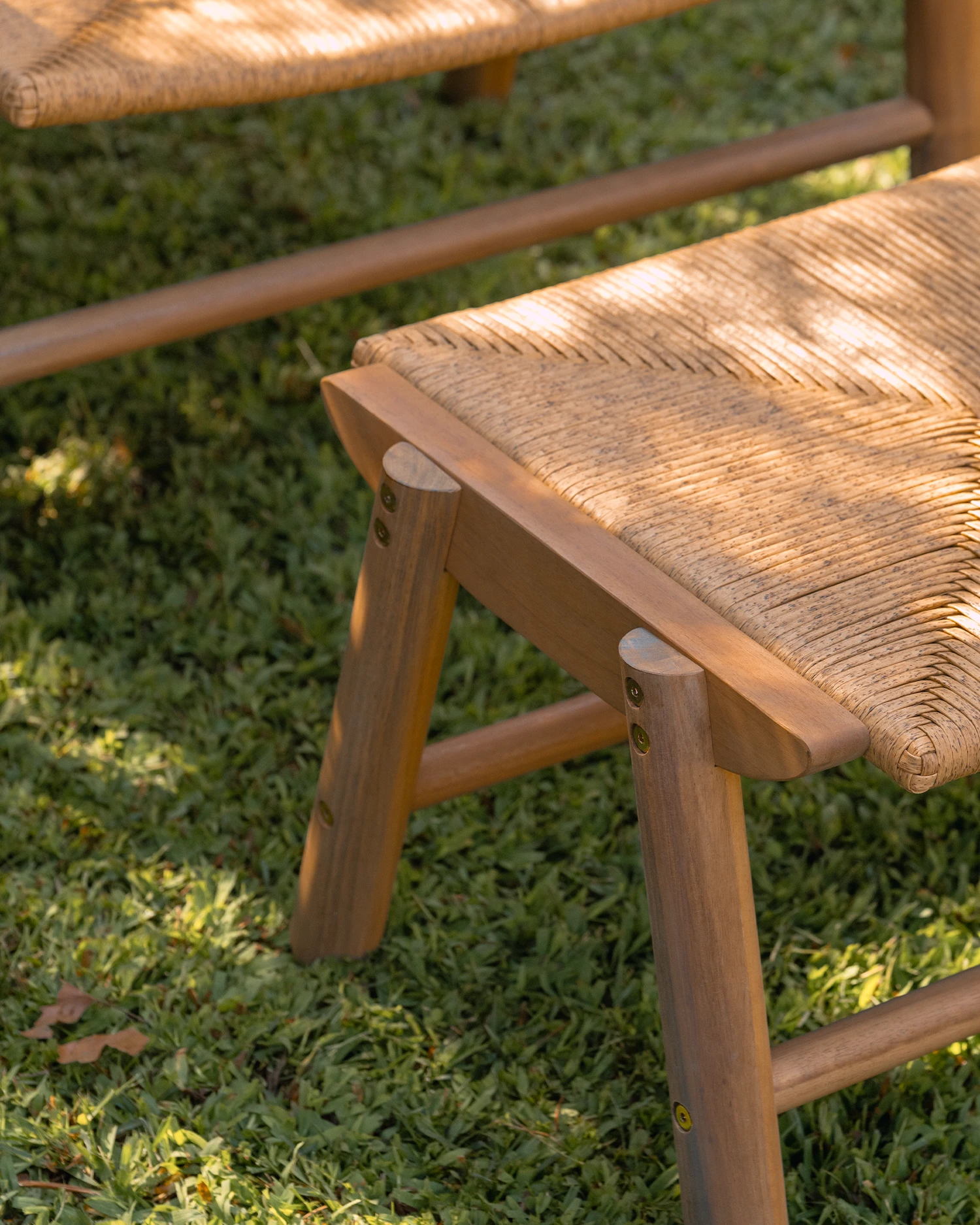 The Chloé collection is a collection created in Barcelona by our design team. It is an example of how tradition is always present in the creation and ideation of our products. With the bulrush braiding of yesteryear as a prism, we have generated this range of products that includes armchairs, sofas, sun loungers and tables. A combination of materials that flow with the landscape and nature.