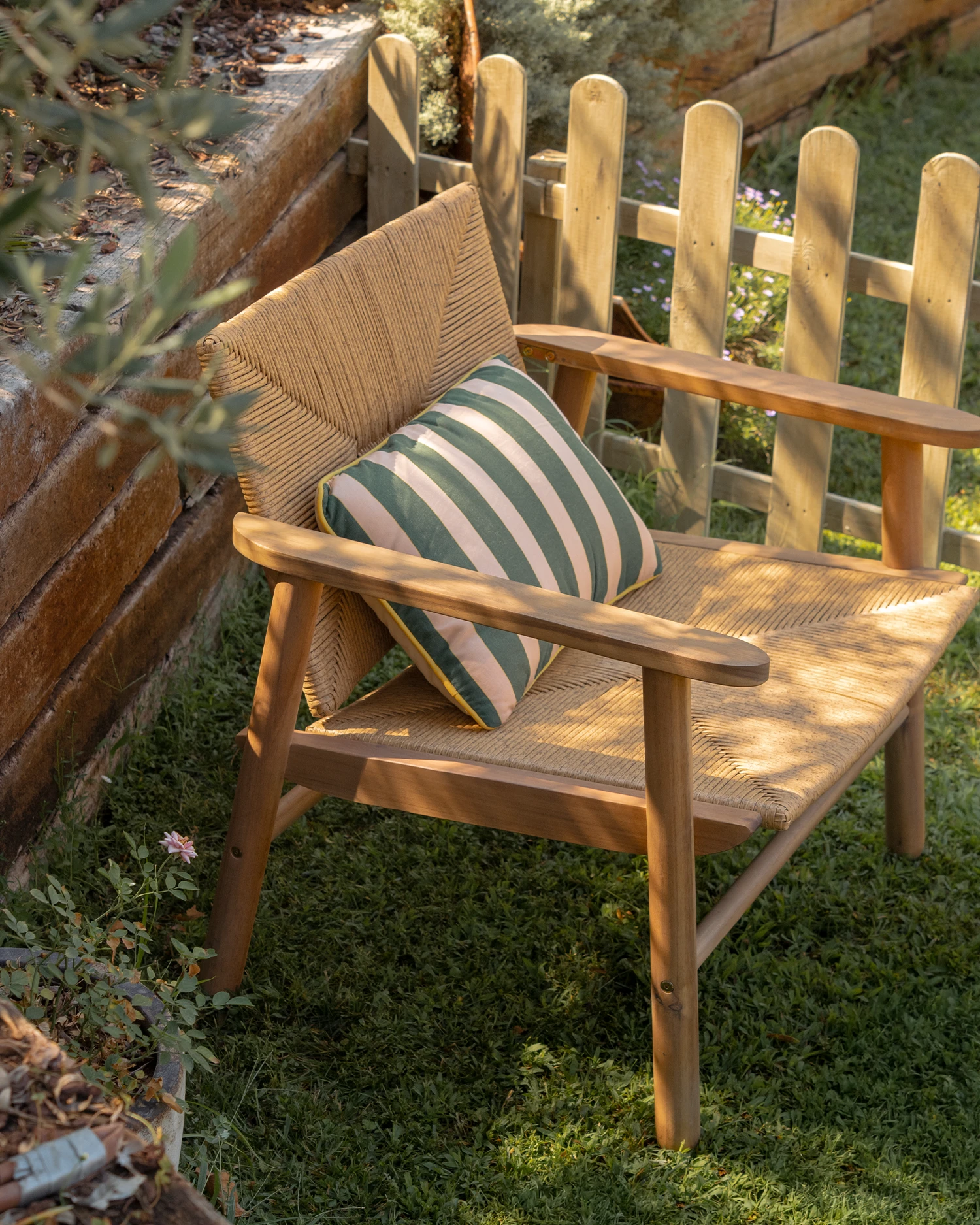 With the charm of craftsmanship and the resistance of modernity, hand-woven synthetic rattan evokes Mediterranean tradition. Lightweight, comfortable and durable, it brings a warm and natural touch to any terrace or garden.