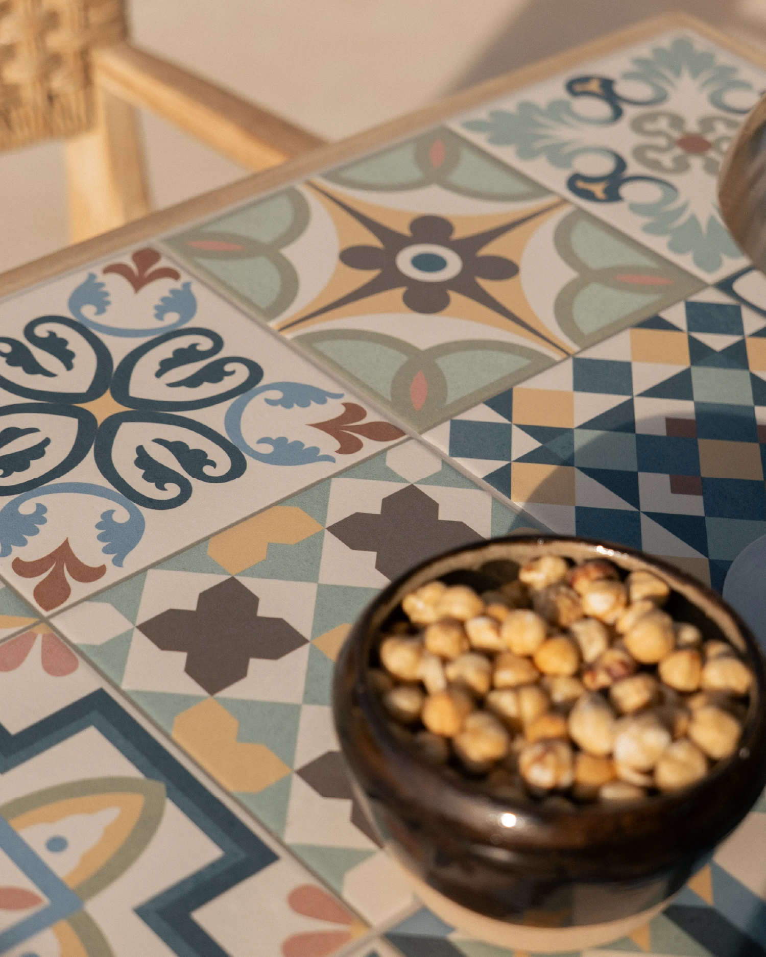 Ceramics manufactured in Castellón are the basis of the Lucca collection. Its pastel colours and modernist mosaic blend perfectly with the warmth of wood. You can also combine the tables in this collection with sofas and chairs of any kind and character.