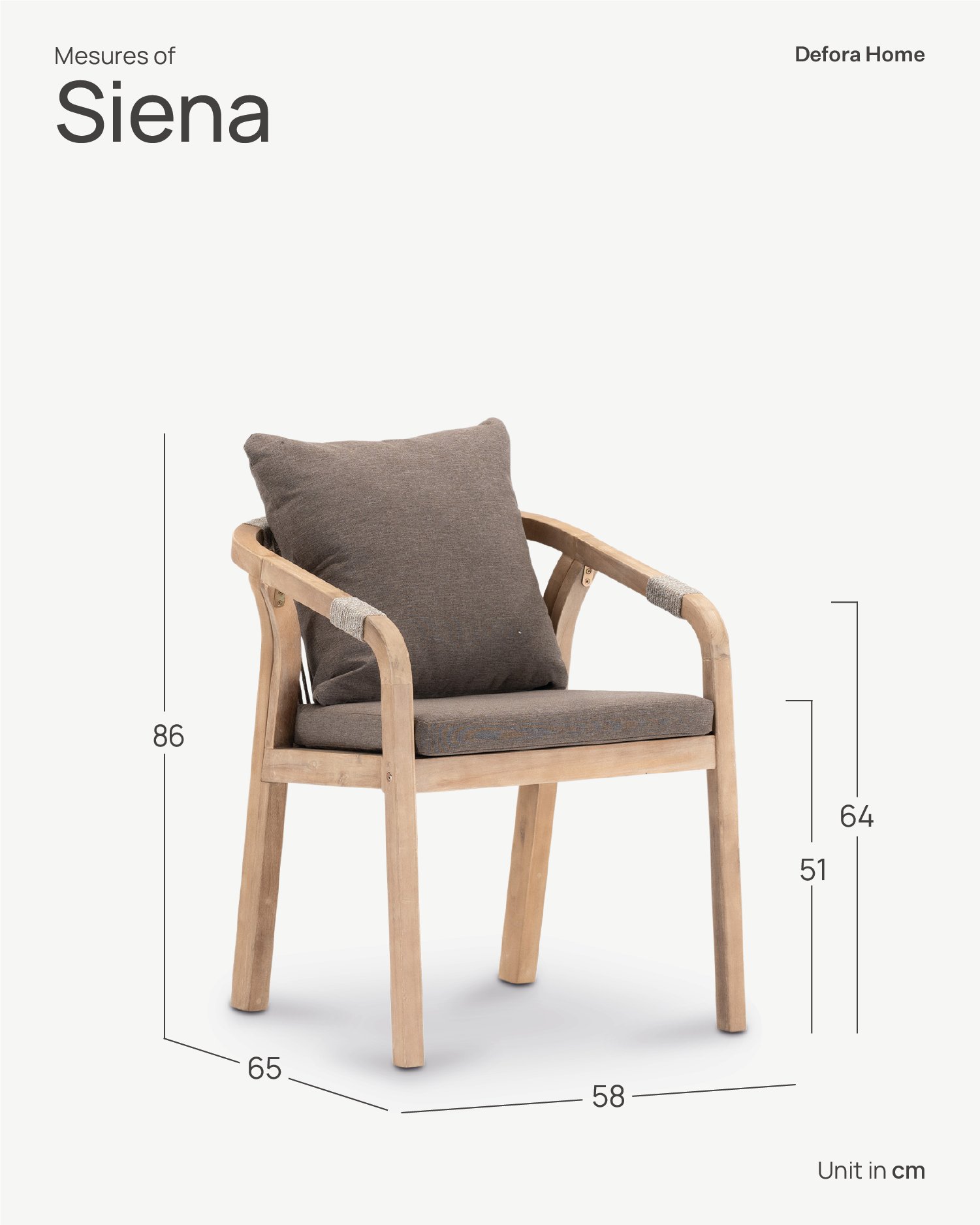 The Siena collection combines materials, colors and textures that bring warmth to any space. The acacia wood used is FSC certified, thus guaranteeing the responsible management of the planet's forest resources from an environmental, social and economic point of view. The rope used in the furniture is hand-braided and beige in color and coordinates perfectly with the brown fabric of the removable cushion covers. All the tables in the Siena collection are of robust and resistant construction, and harmonize with any type of material and color with which you want to combine it.