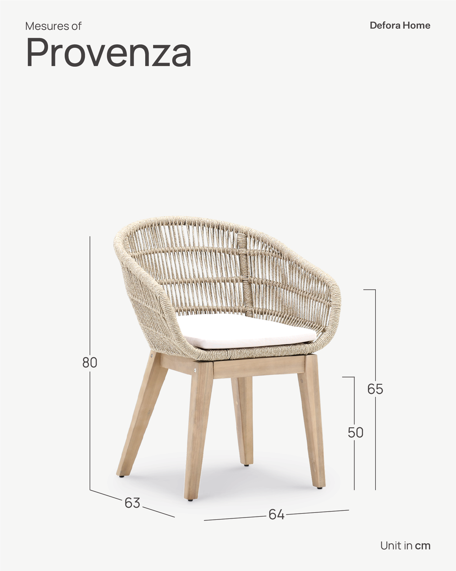 The Provence collection with its curved and enveloping lines is in soft and neutral colours. Decorate and harmonize in any space. The combination of its materials, the light-colored wood of its structures, beige rope of the frame and the raw fabric of its removable cushions as well as the terrazzo table tops make this collection evoke Provençal landscapes.