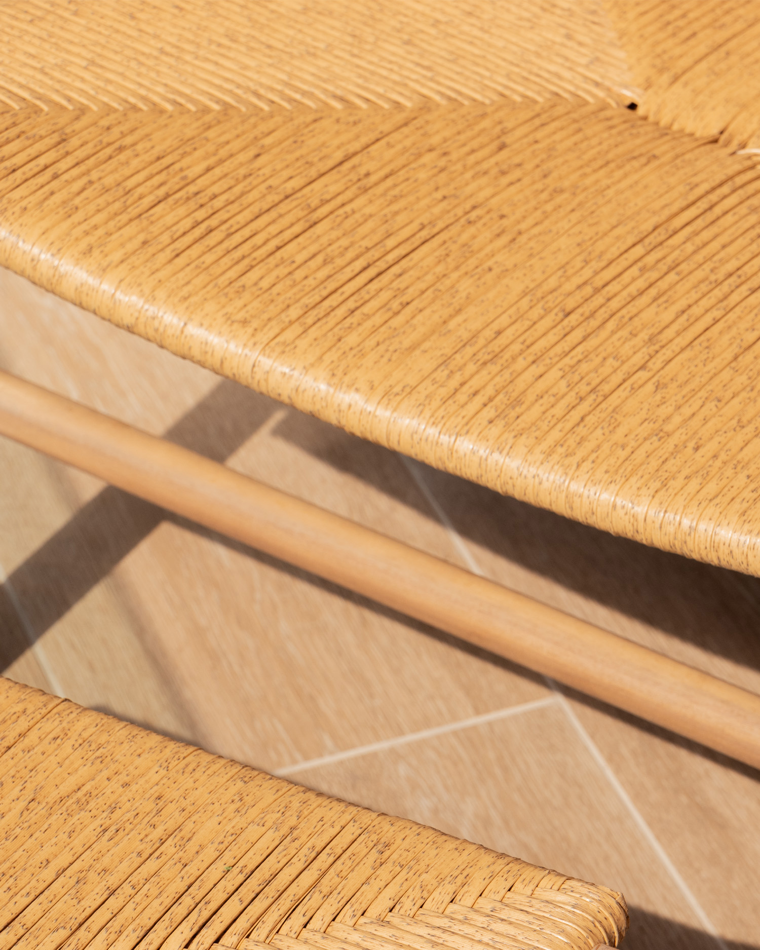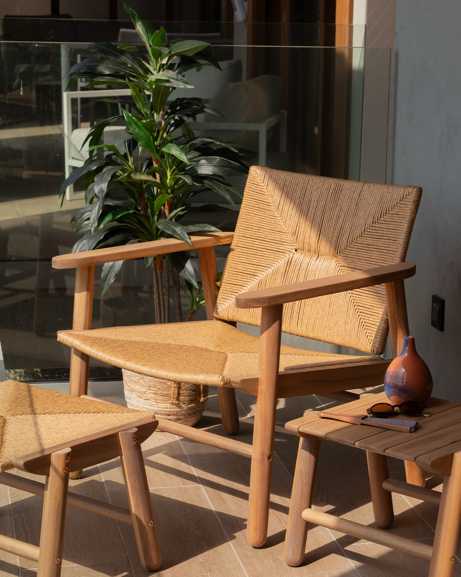 The Chloé collection is a collection created in Barcelona by our design team. It is an example of how tradition is always present in the creation and ideation of our products. With the bulrush braiding of yesteryear as a prism, we have generated this range of products that includes armchairs, sofas, sun loungers and tables. A combination of materials that flow with the landscape and nature.