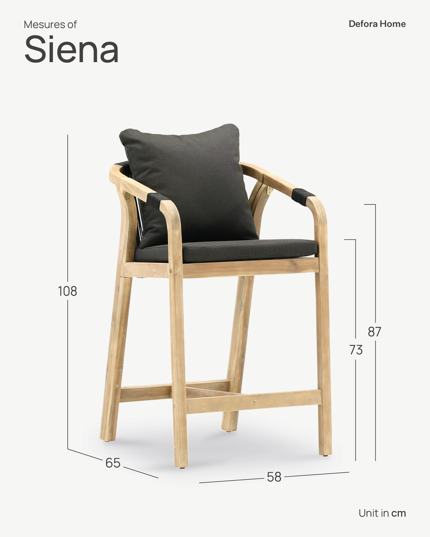The Zanzibar collection combines materials, colours and textures that bring warmth and sobriety to any space. The acacia wood used is FSC certified, thus guaranteeing the responsible management of the planet's forest resources from an environmental, social and economic point of view. The rope used in the furniture is hand-braided and black in color and coordinates perfectly with the dark anthracite fabric of the removable cushions. All the tables in the Zanzibar collection are of robust and resistant construction, and harmonize with any type of material and color with which you want to combine it.