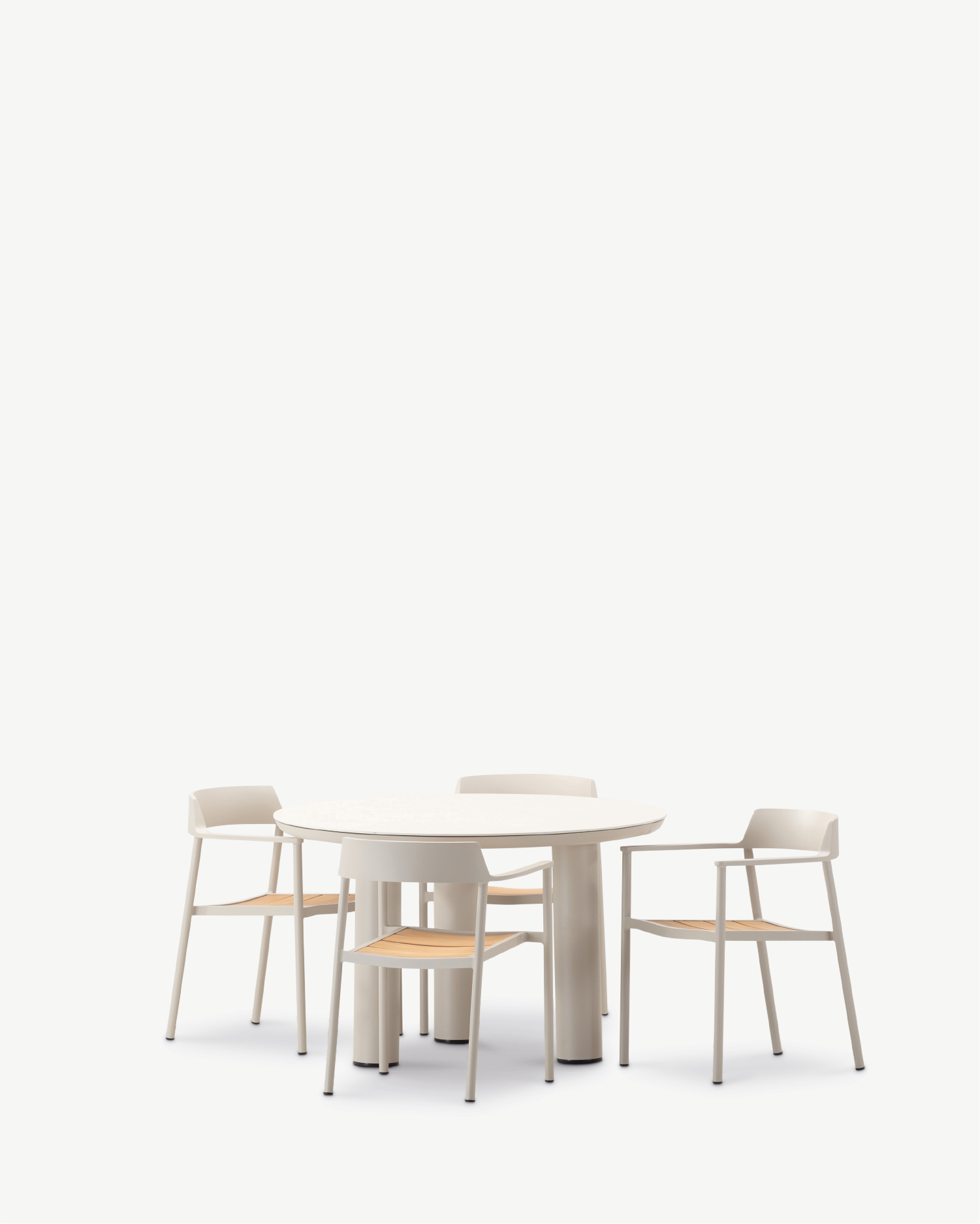Round 4-seater dining set beige aluminum, ceramic and teak