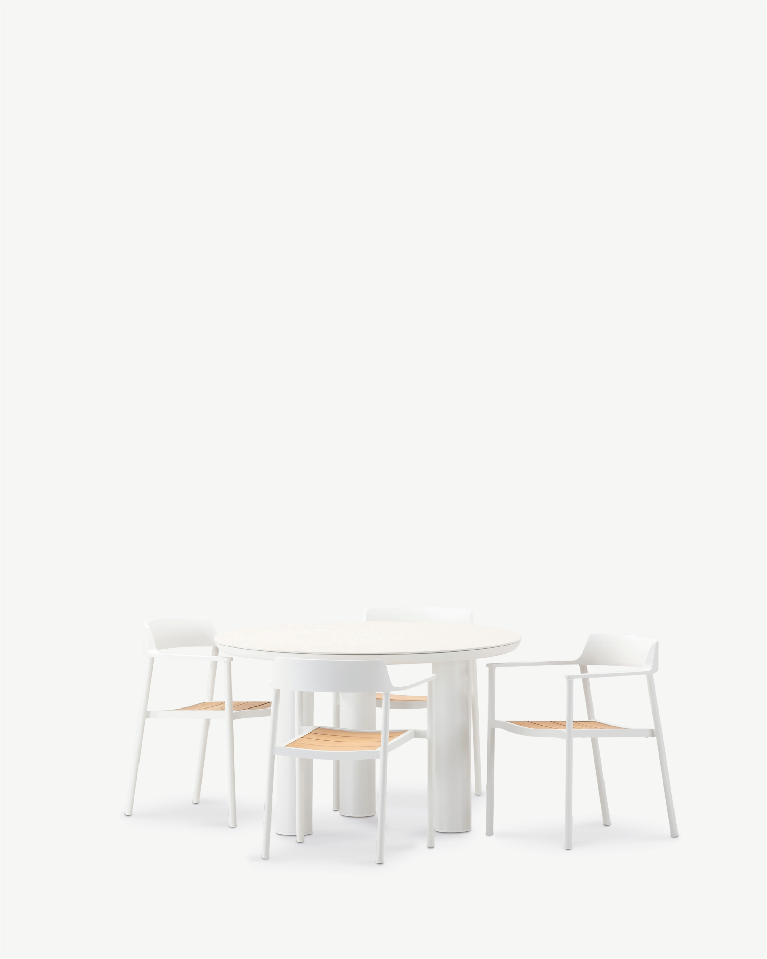 Round 4-seater dining set white aluminum, ceramic and teak