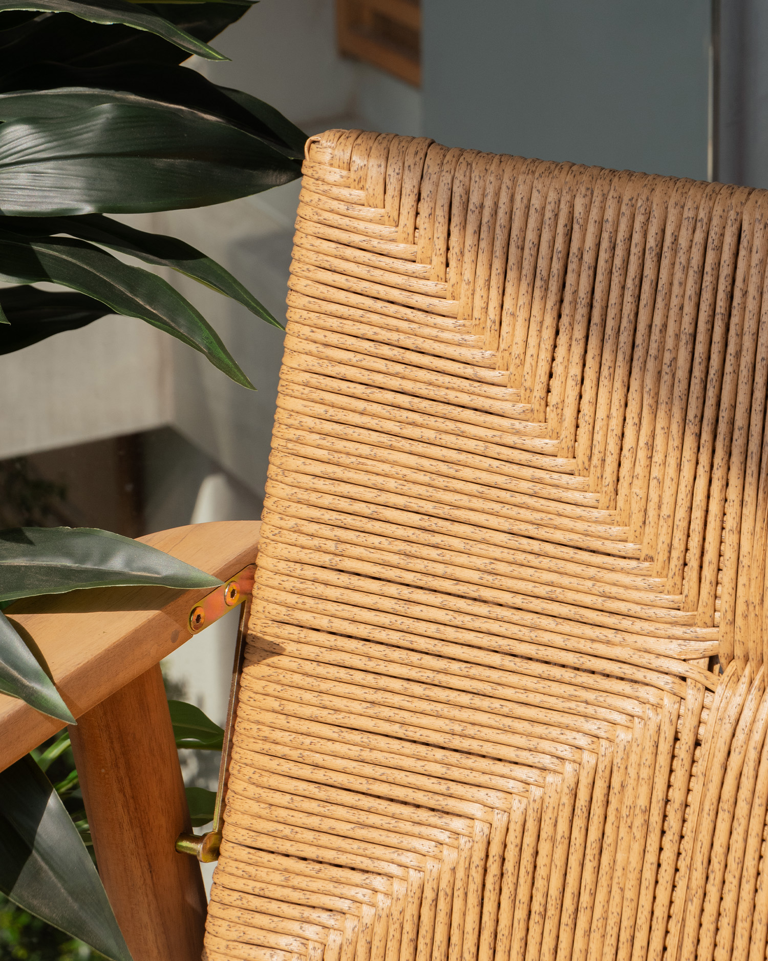 Wood and synthetic rattan armchair