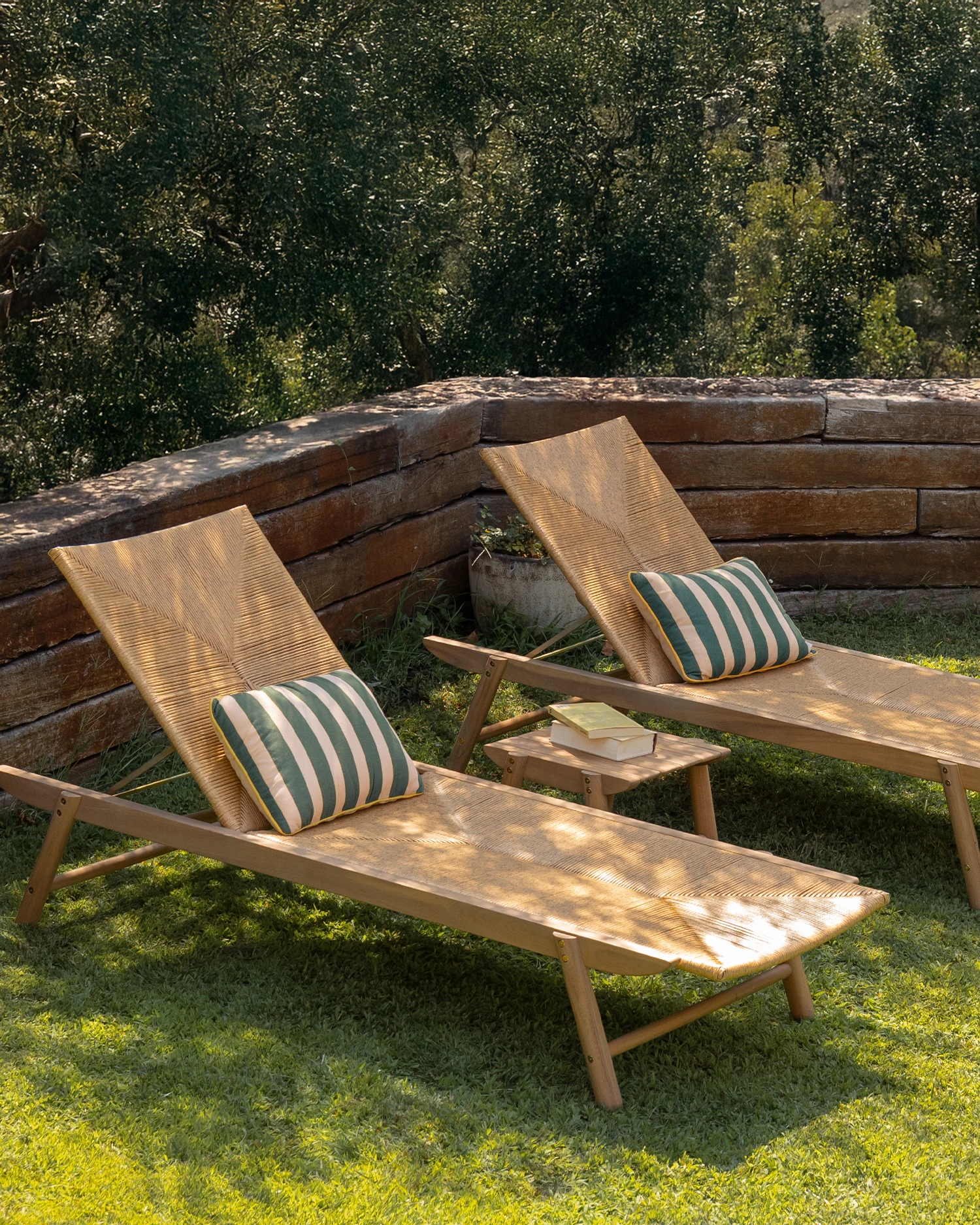 The Chloé collection is a collection created in Barcelona by our design team. It is an example of how tradition is always present in the creation and ideation of our products. With the bulrush braiding of yesteryear as a prism, we have generated this range of products that includes armchairs, sofas, sun loungers and tables. A combination of materials that flow with the landscape and nature.