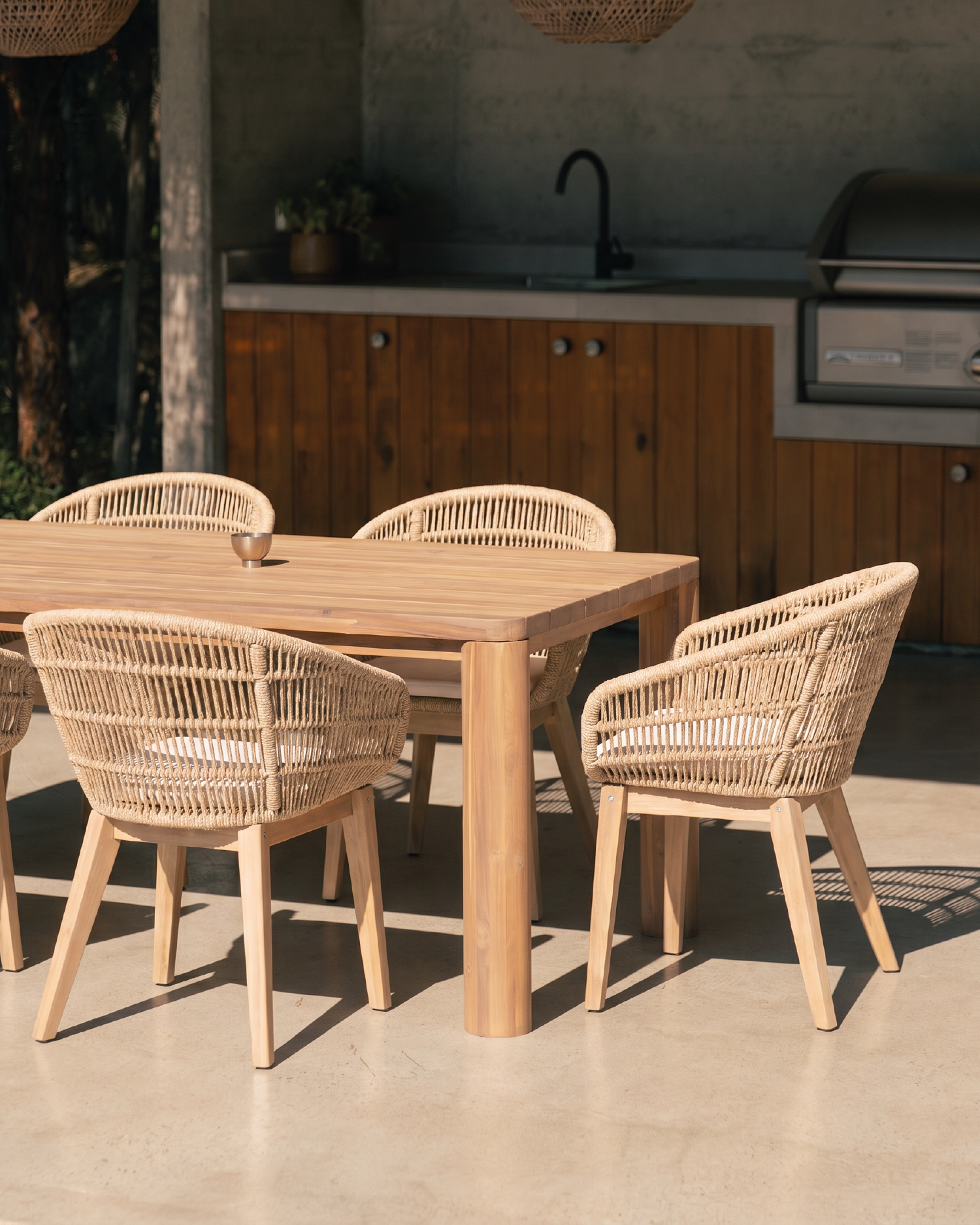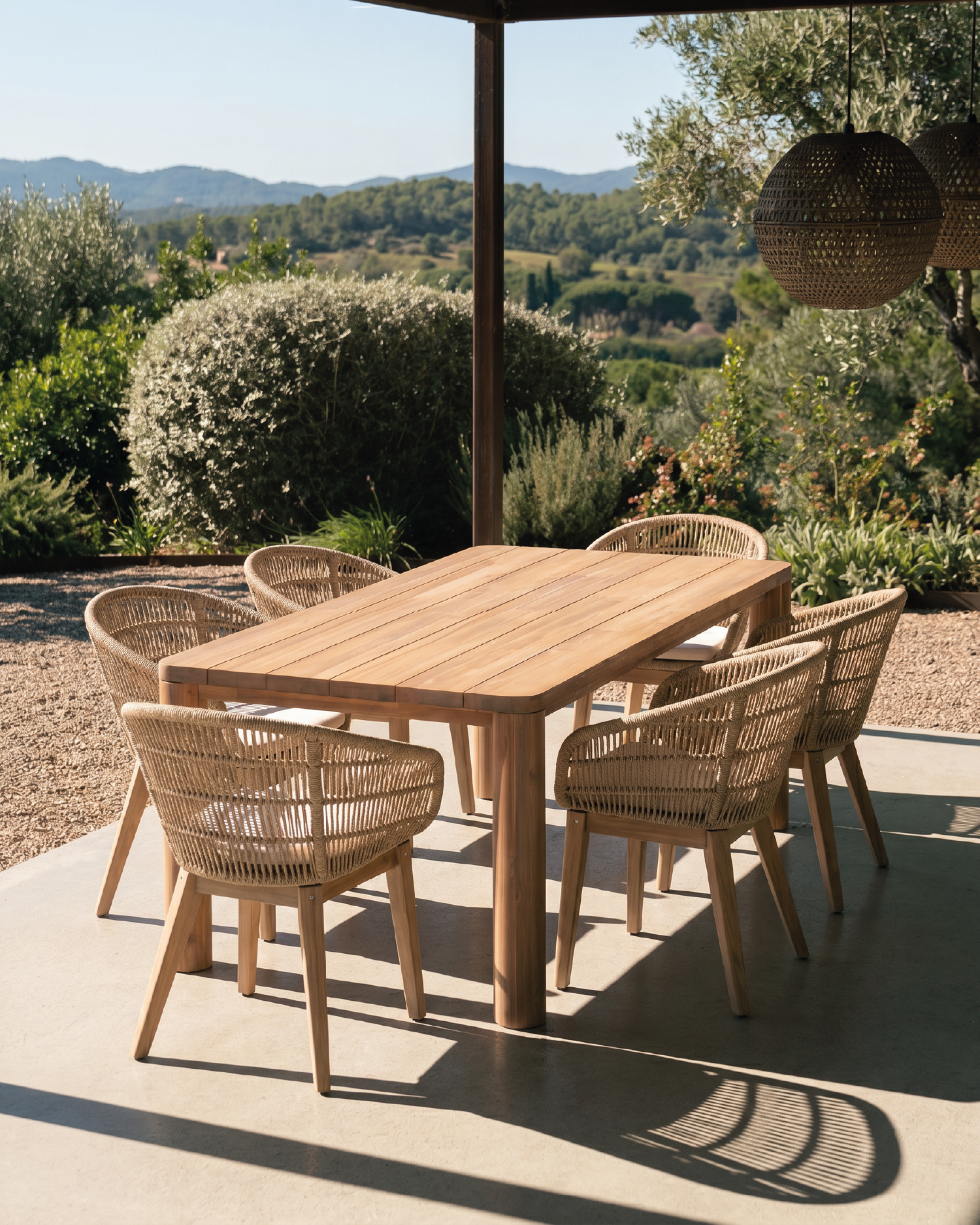 Conjunto de comedor de jardín madera y cuerda 6 plazas
