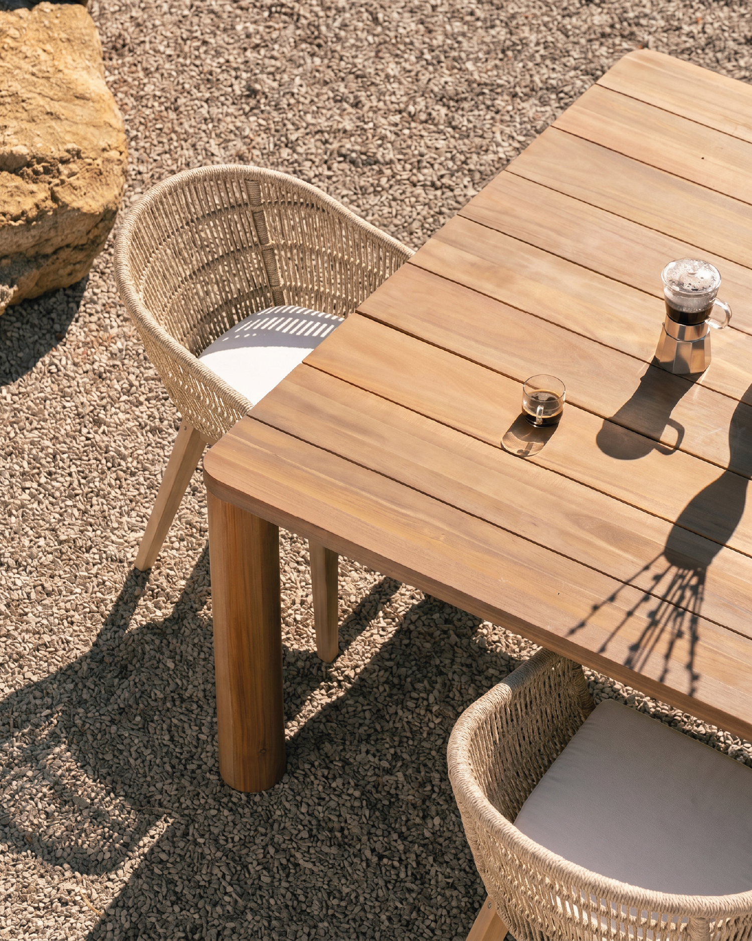 Silla con cuerda beige y cojines desenfundables