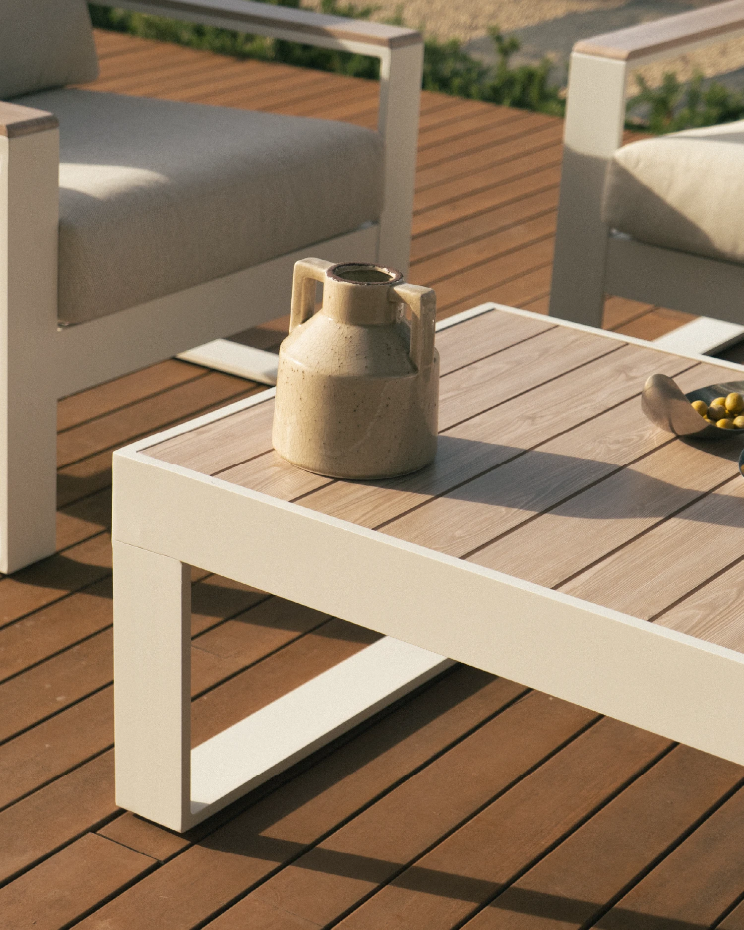 Estructura blanco y cojines beige desenfundables