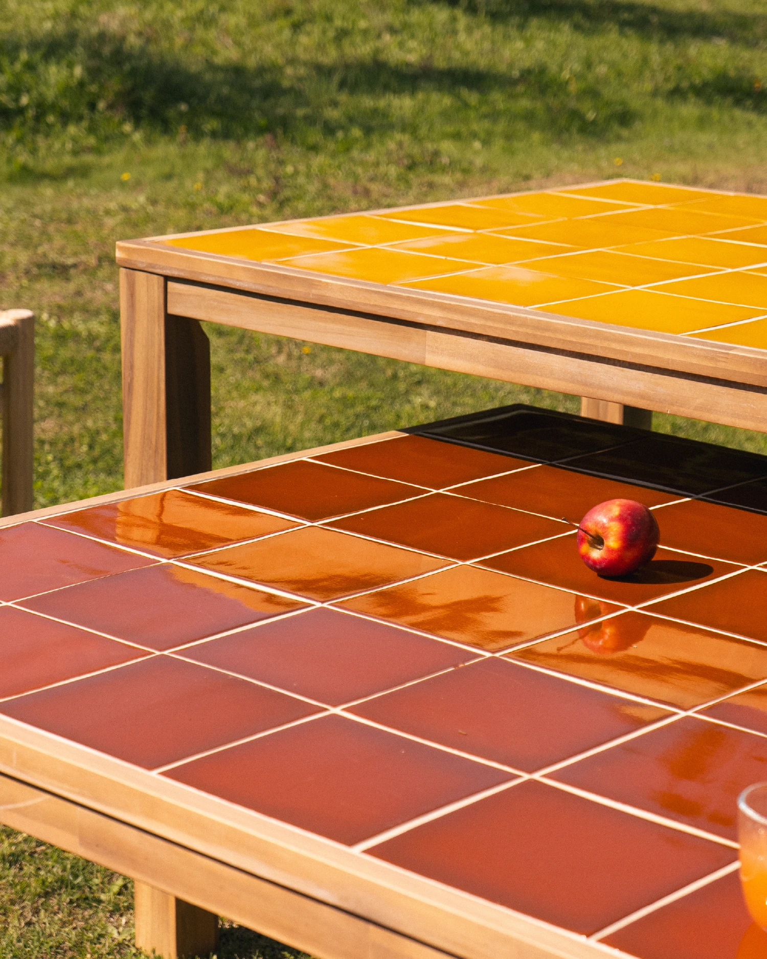 El sobre de esta mesa de cerámica está compuesto por mosaicos vidriados de 20x20 cm a color, elaborados artesanalmente por Cerámica Ferrés, de La Bisbal de Empordà (Girona). Empresa ampliamente reconocida por su tradición ceramista. Los colores de la mesa cerámica aportan vida, frescura y un aire mediterráneo, que armoniza perfectamente con la estructura de madera color claro.