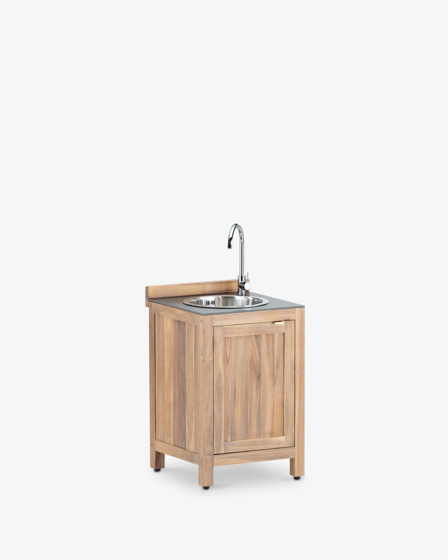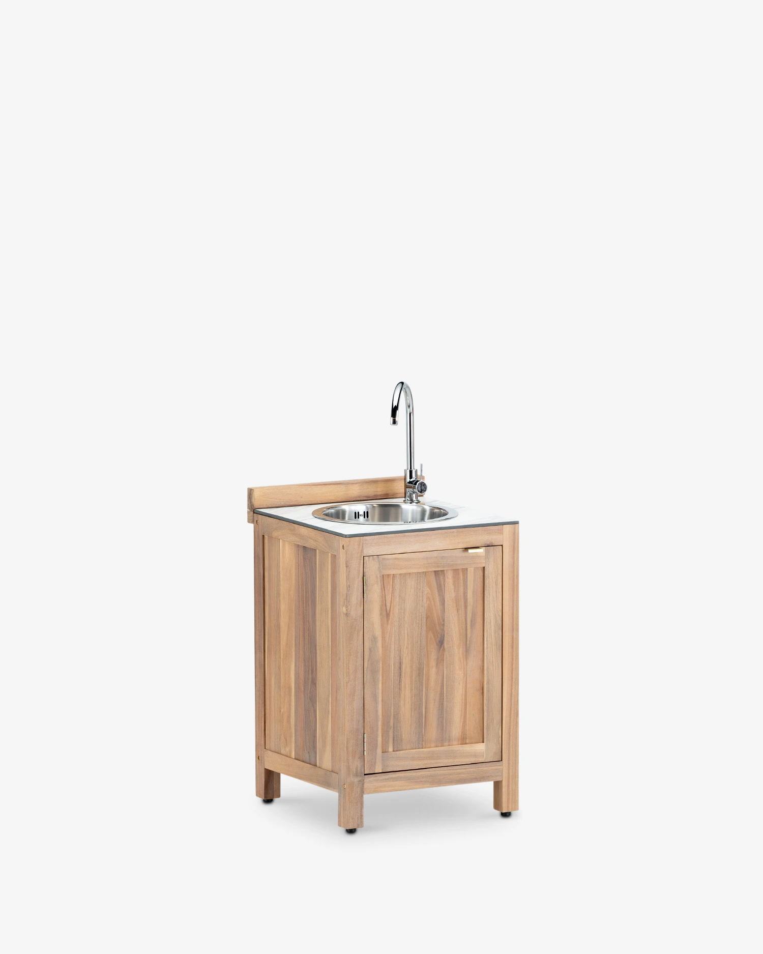 La colección de cocinas de exterior modular Valentina es funcional, versátil, muy útil y adaptable. Puedes elegir entre sus 4 modelos de módulo para configurar la cocina que más se adapte a tu espacio y necesidades. Además puedes elegir entre 4 acabados de encimera de HPL distintos, así podrás adaptarlo perfectamente a la estética de tu hogar. Un detalle importante es que todos los módulos incluyen topes regulables en altura además de ruedas. En el caso del módulo fregadero, tanto el grifo como el fregadero están incluídos.