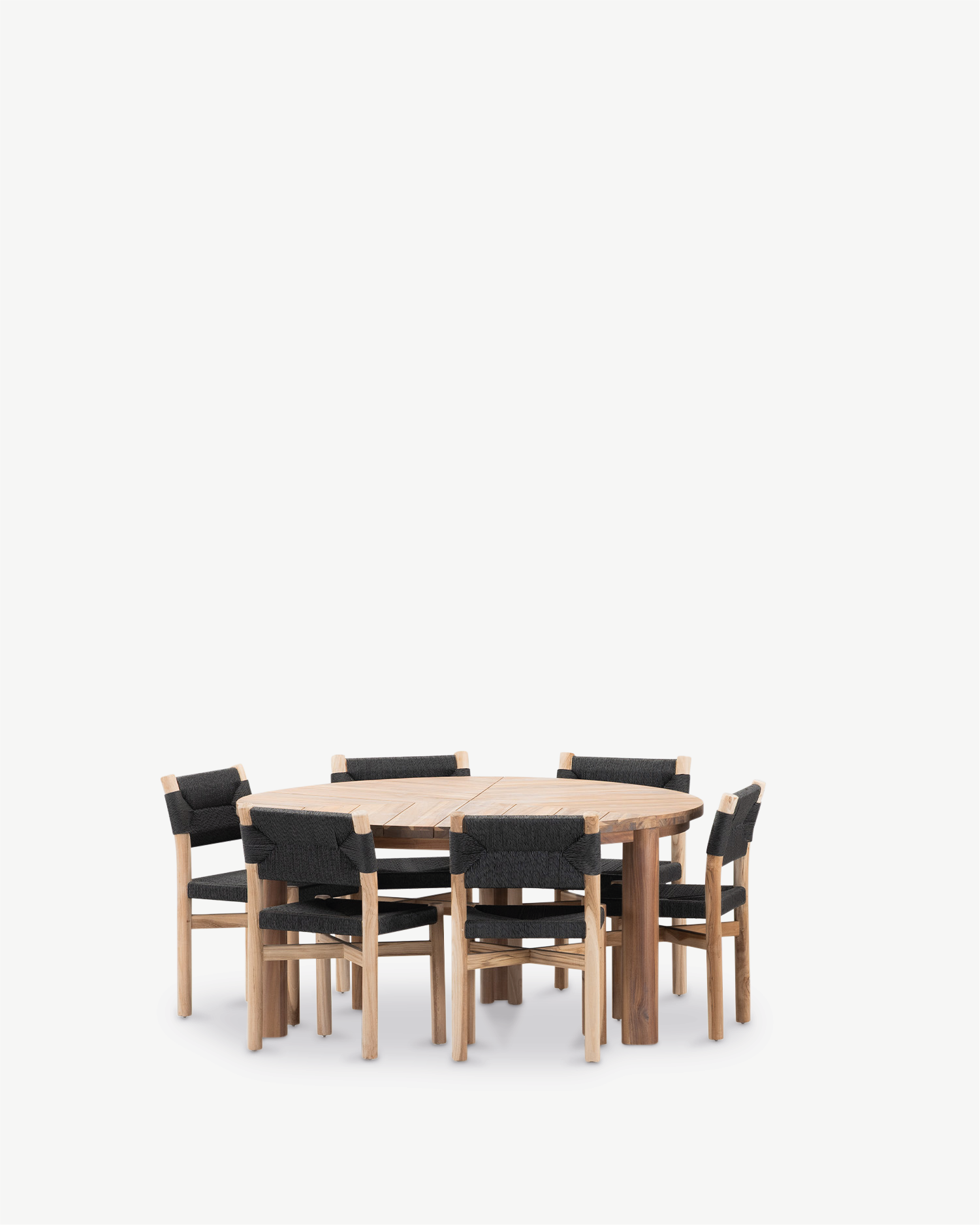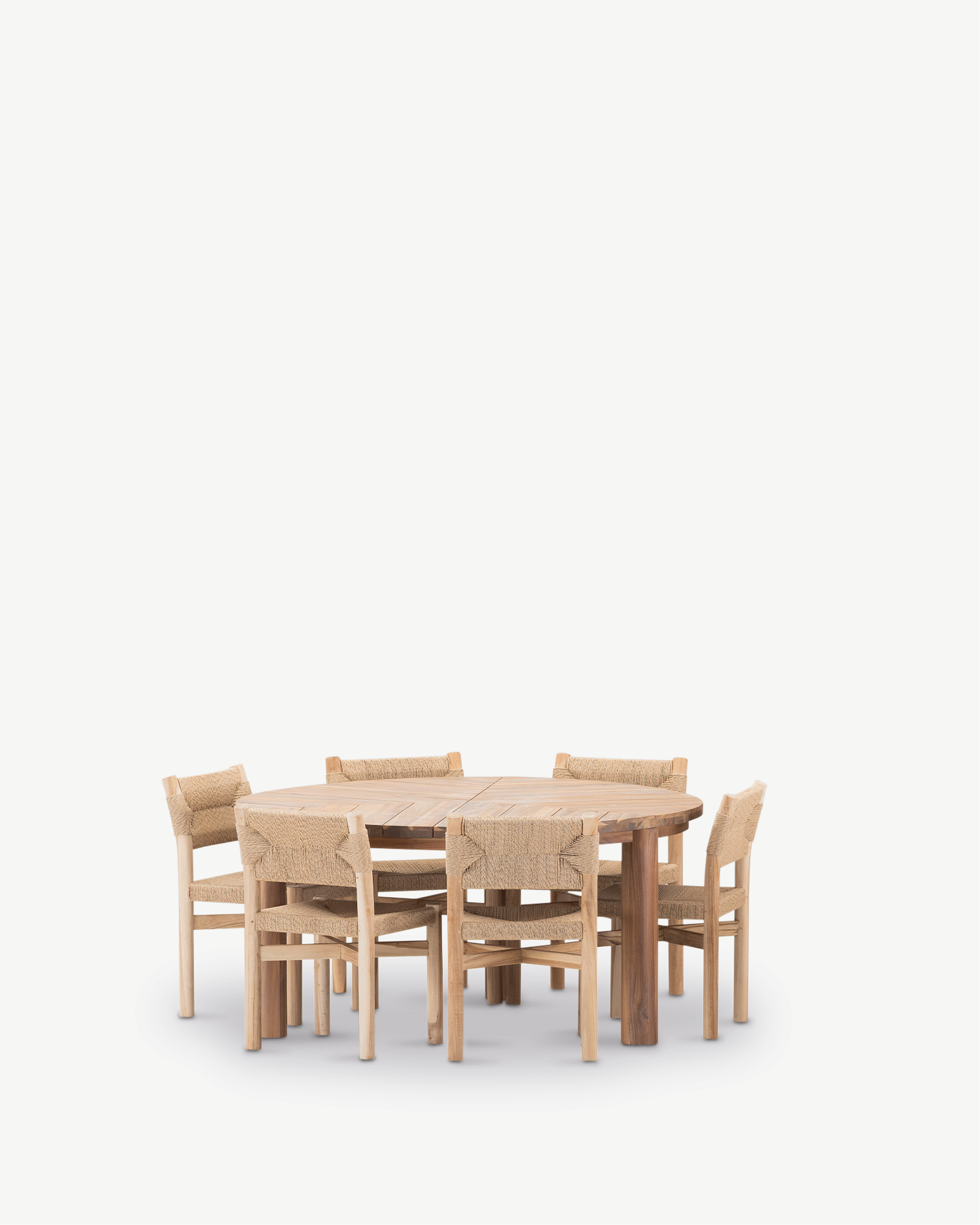 Ensemble de salle à manger rond 6 places en bois d’acacia FSC