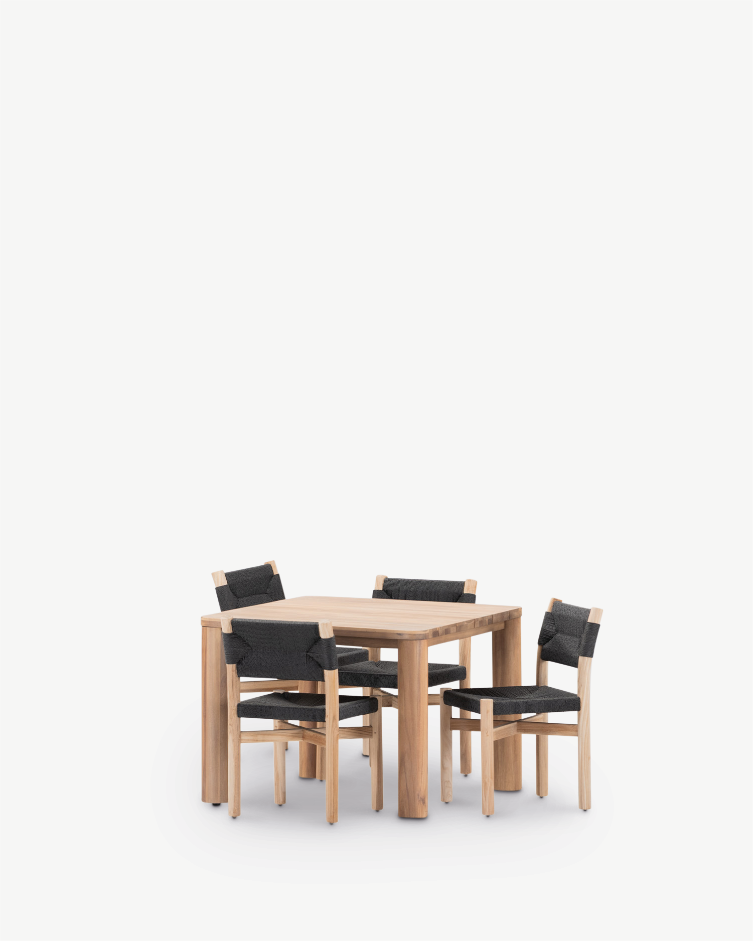 Table : 100x100x75cm, Chaise : 48x56x80cm