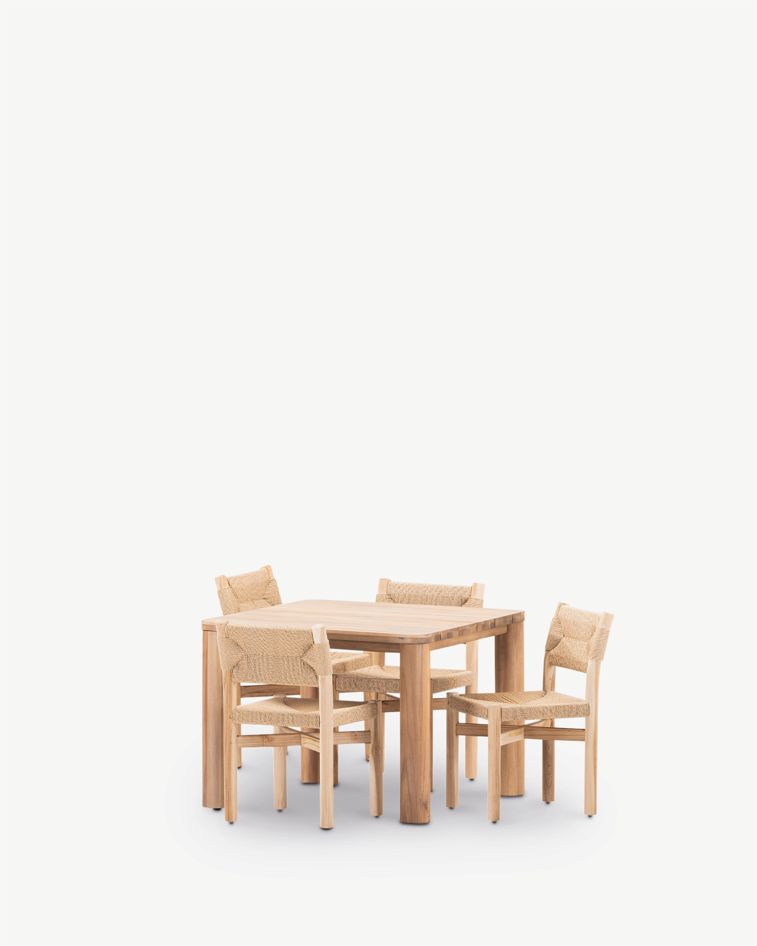 Set de salle à manger bois 100x100 et rotin synthétique 4 places