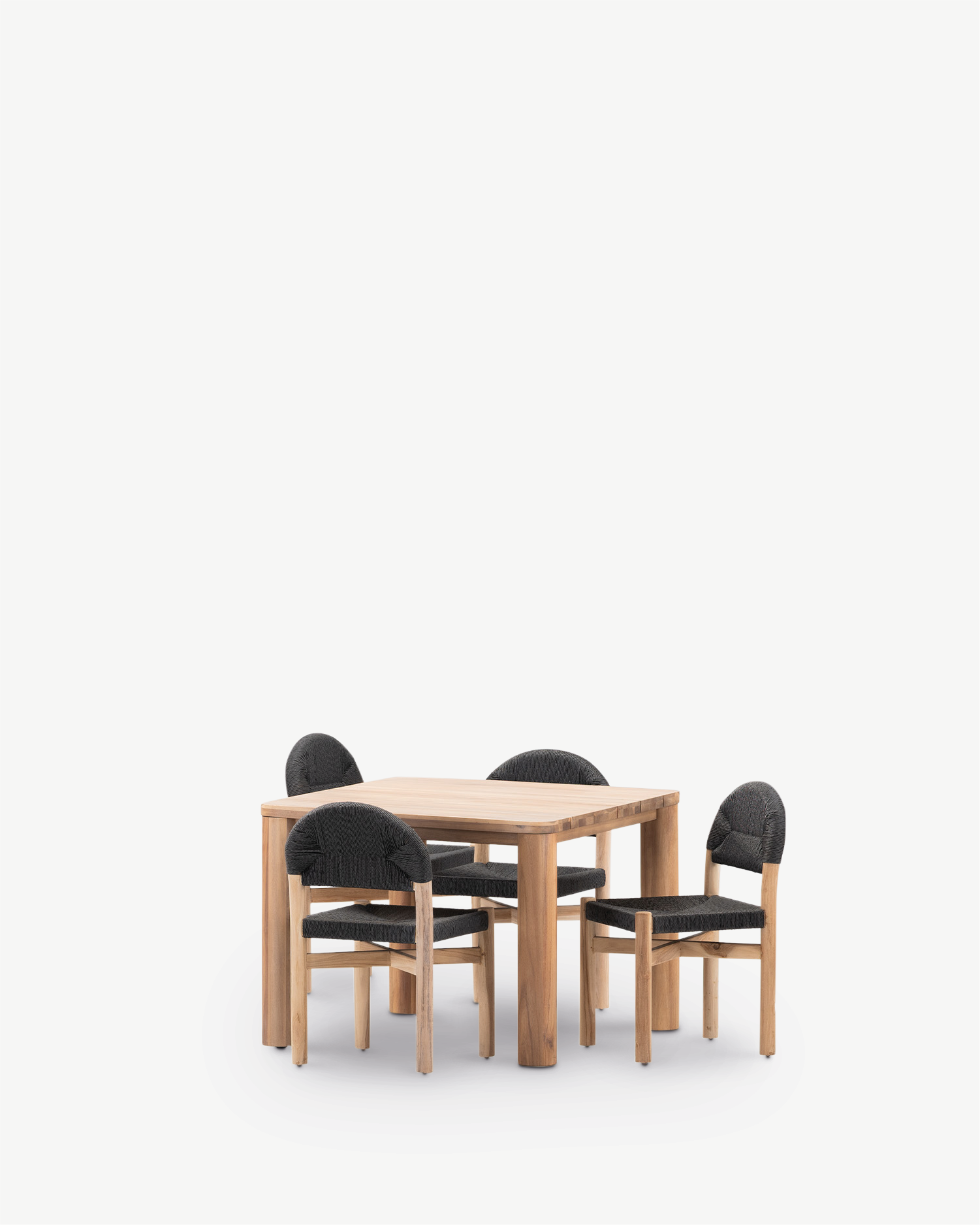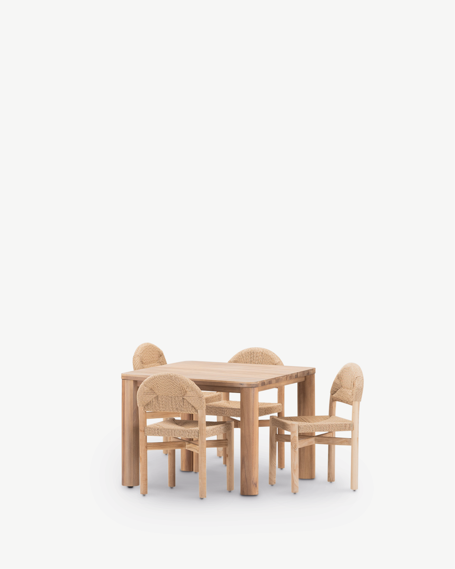 Table : 100x100x75cm, Chaise : 48x55x81cm