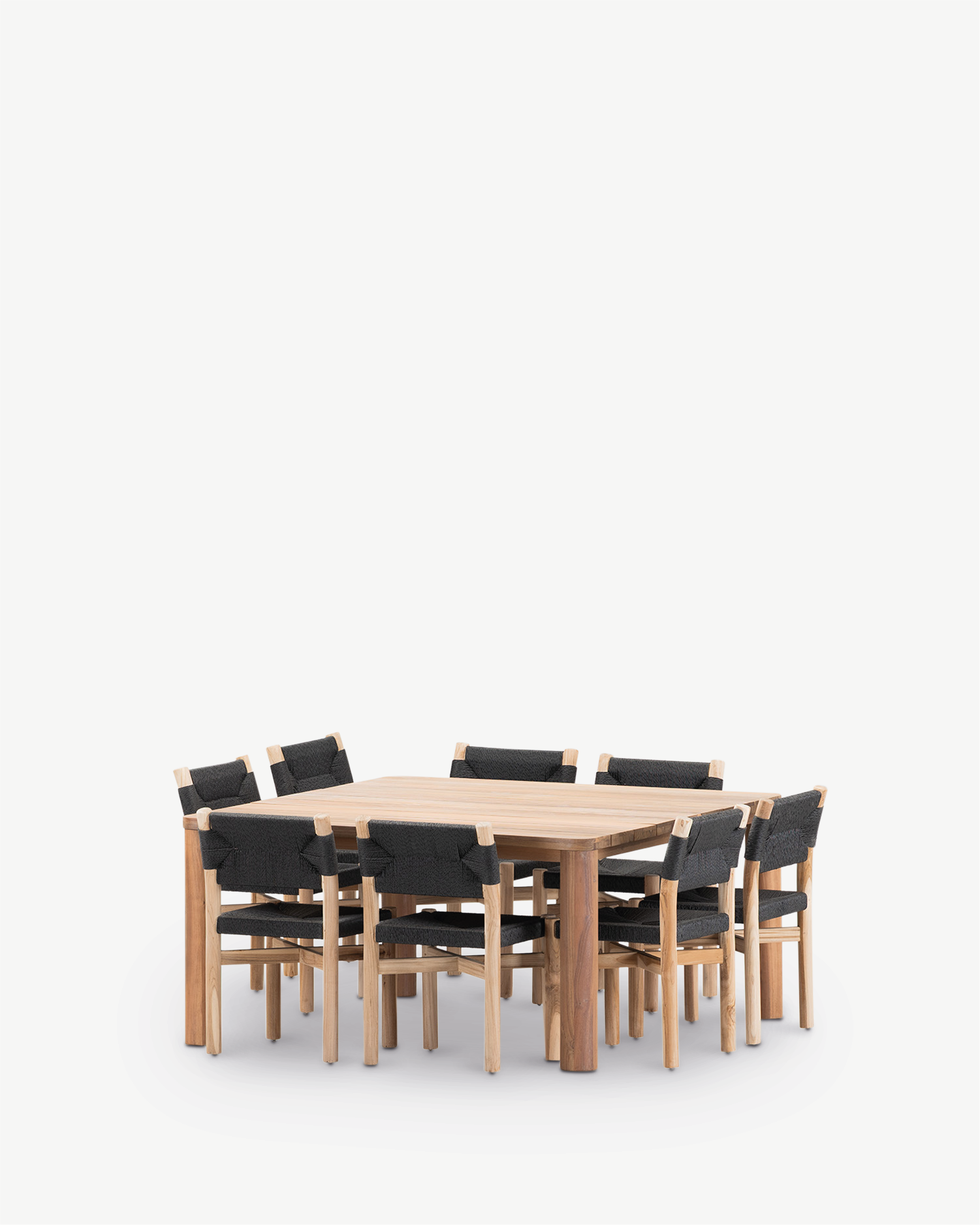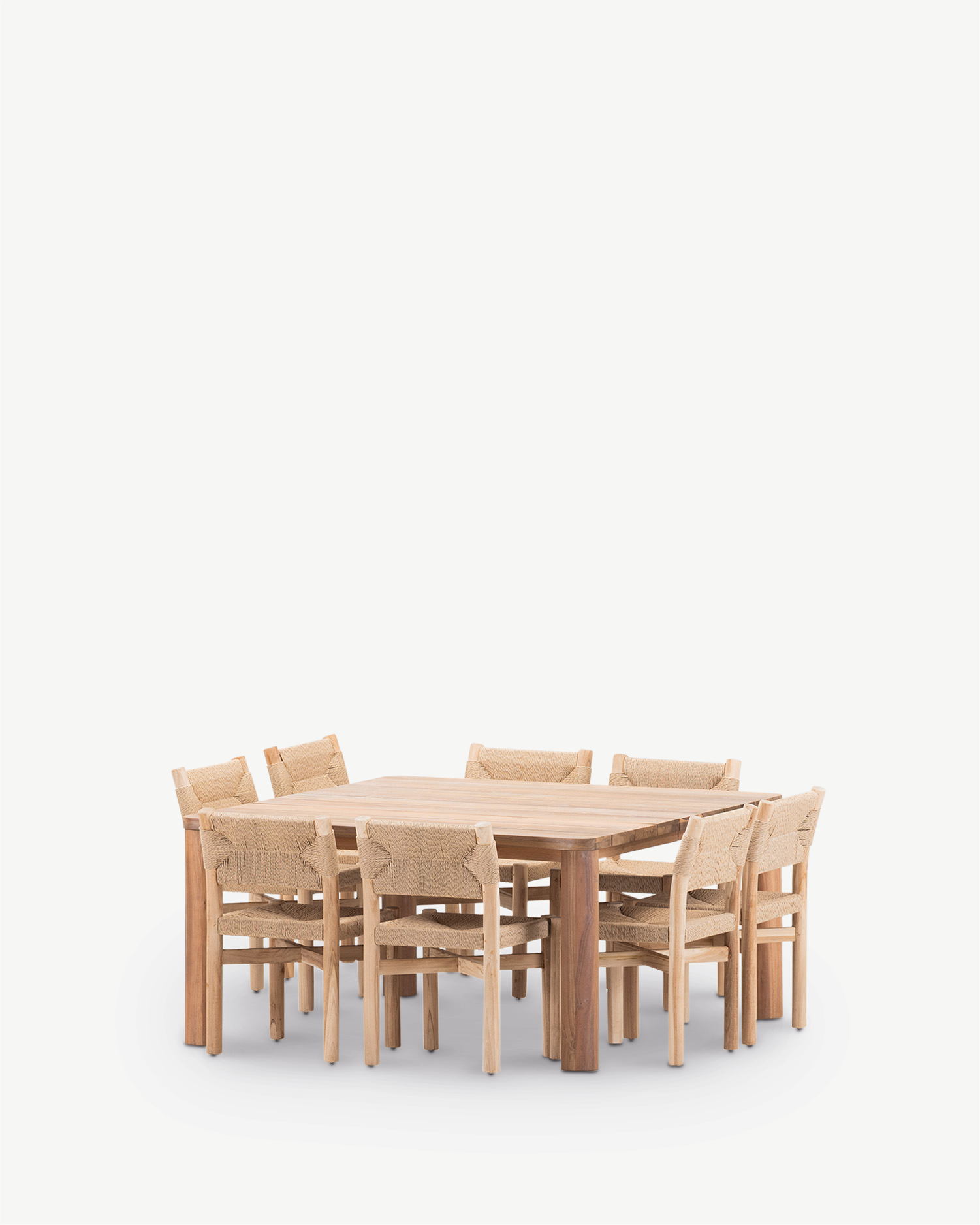 Set de salle à manger bois 150x150 et rotin synthétique 8 places