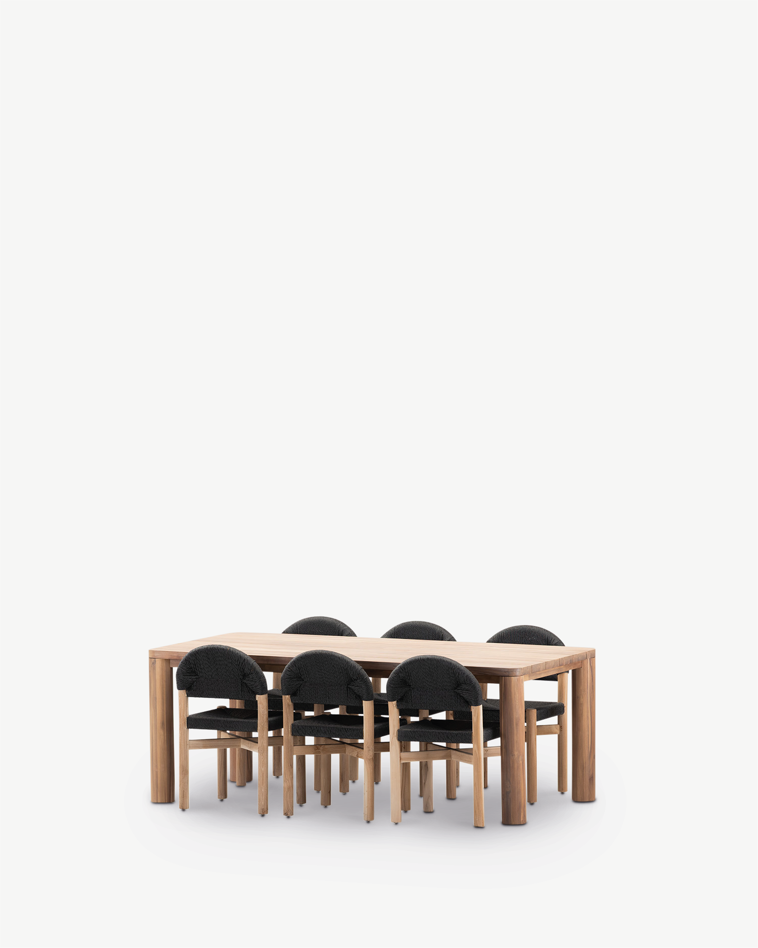 La collection Bruna de notre propre marque Comu a pour axe principal le bois et les lignes robustes, ainsi qu’un caractère très marqué grâce à ses pieds cylindriques aux sections généreuses. De larges lattes de bois et des structures cohérentes et solides se combinent parfaitement avec d’autres matériaux et formes et coexistent en s’harmonisant avec tout type de chaise et de mobilier.