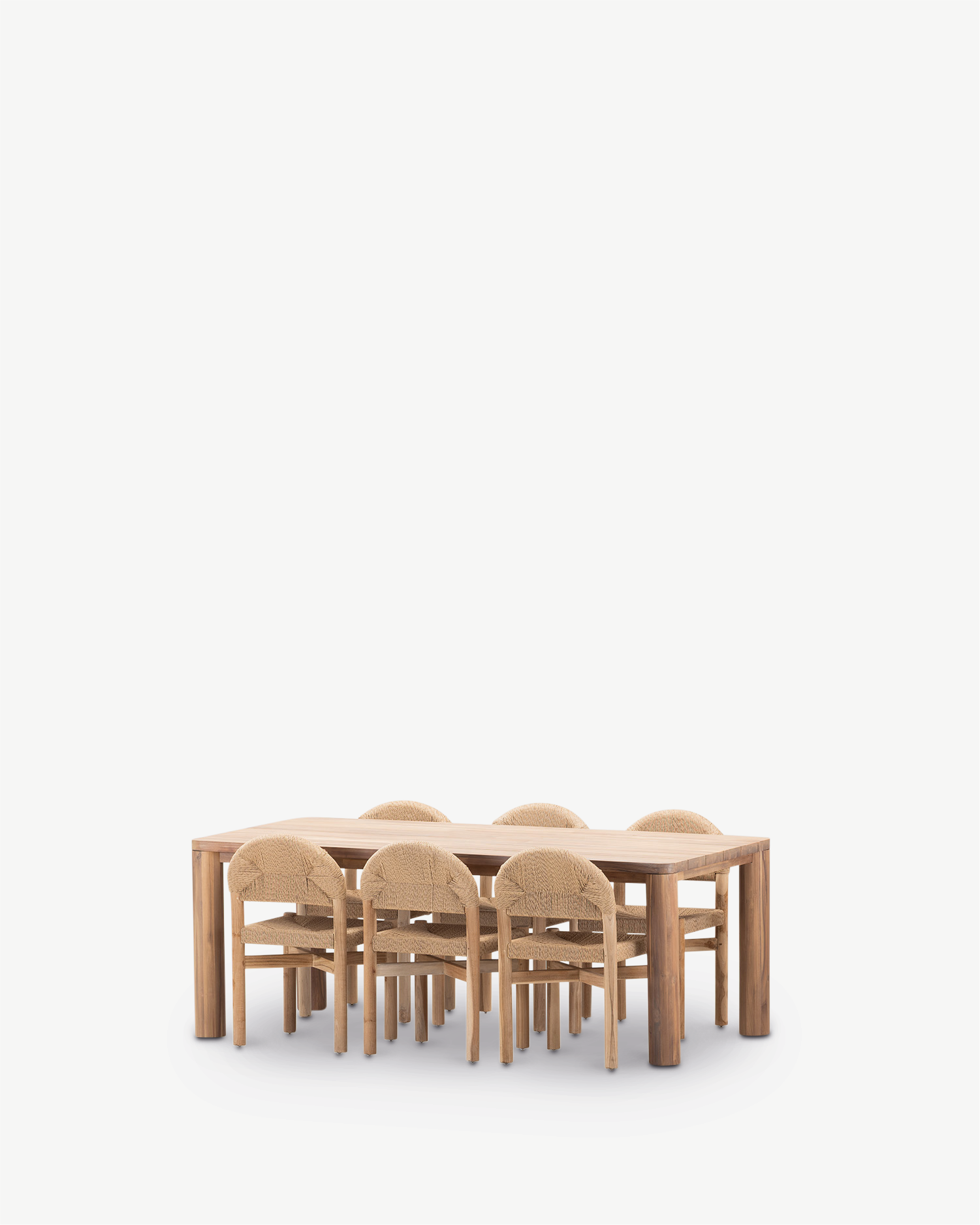 Set de salle à manger bois 200x100 et rotin synthétique 6 places