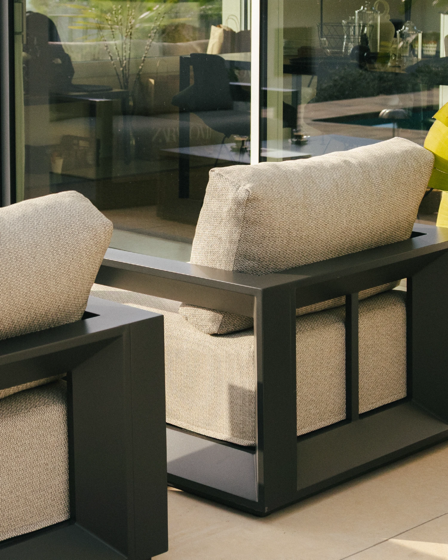 I profili in alluminio della collezione hanno molto carattere, oltre al piano in alluminio liscio del tavolo che si armonizza perfettamente con i cuscini extra audaci della serie. Tutto questo combinato crea una collezione moderna con il comfort come punto di partenza.