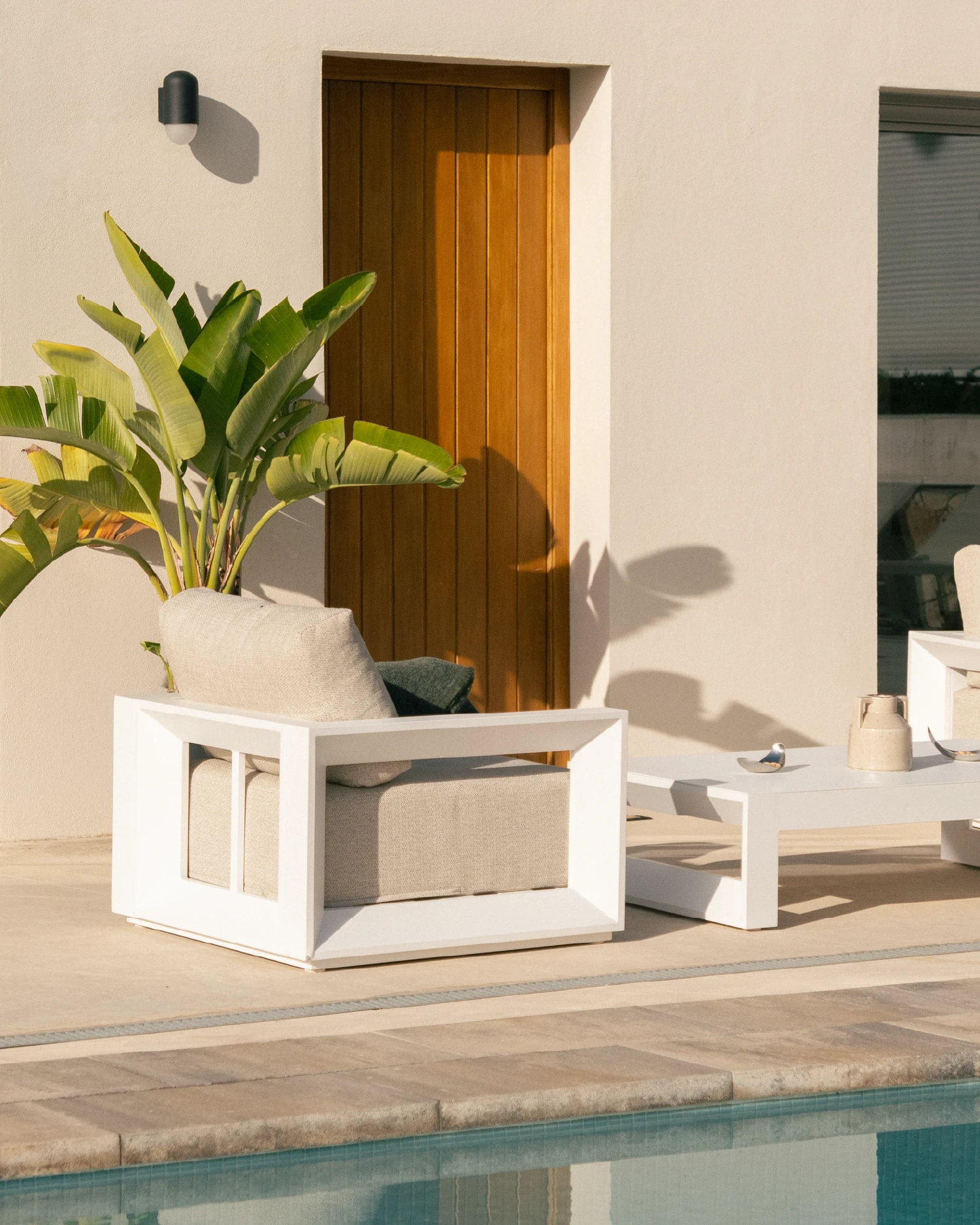 Pack 2 poltrone da giardino alluminio bianco e cuscino beige