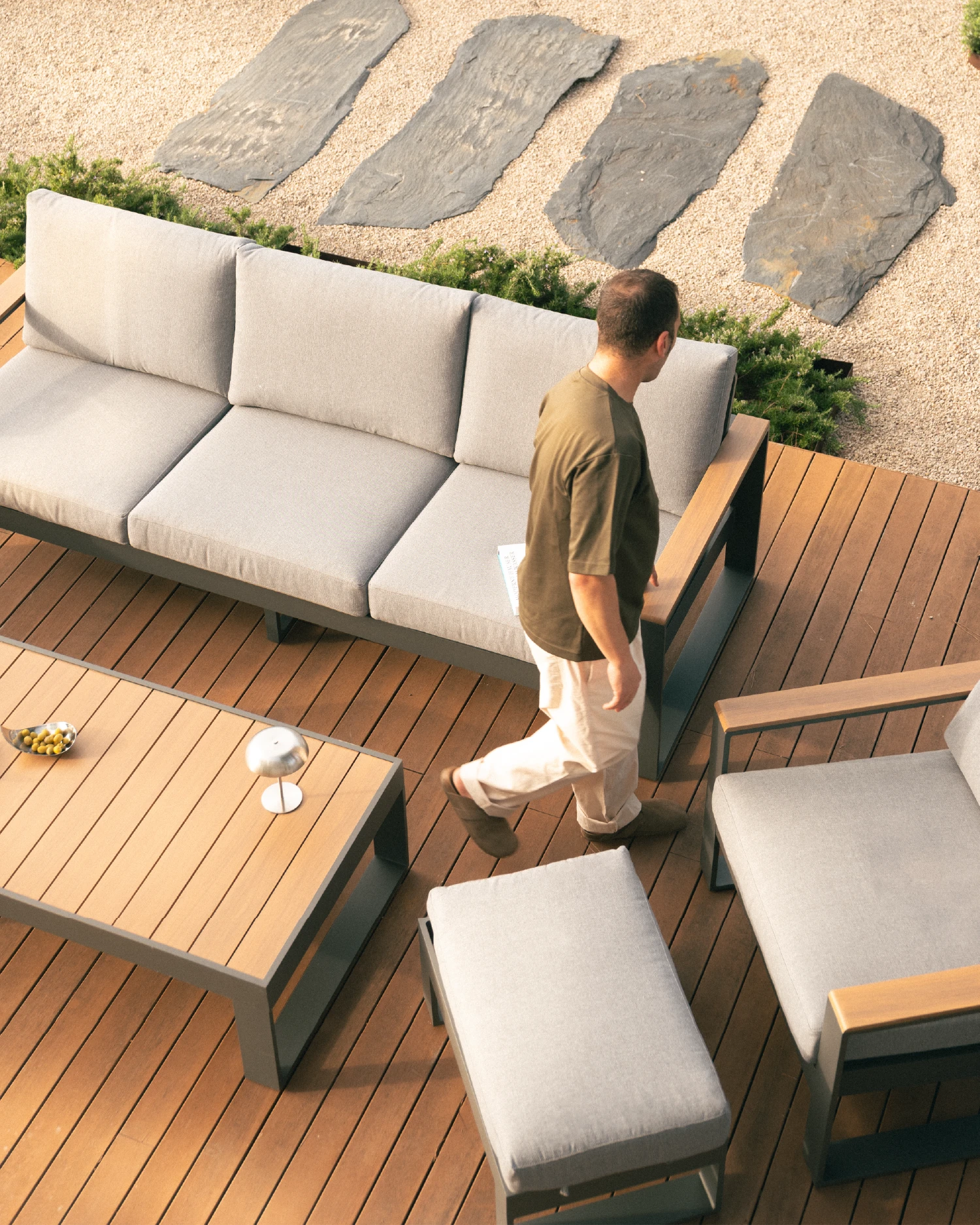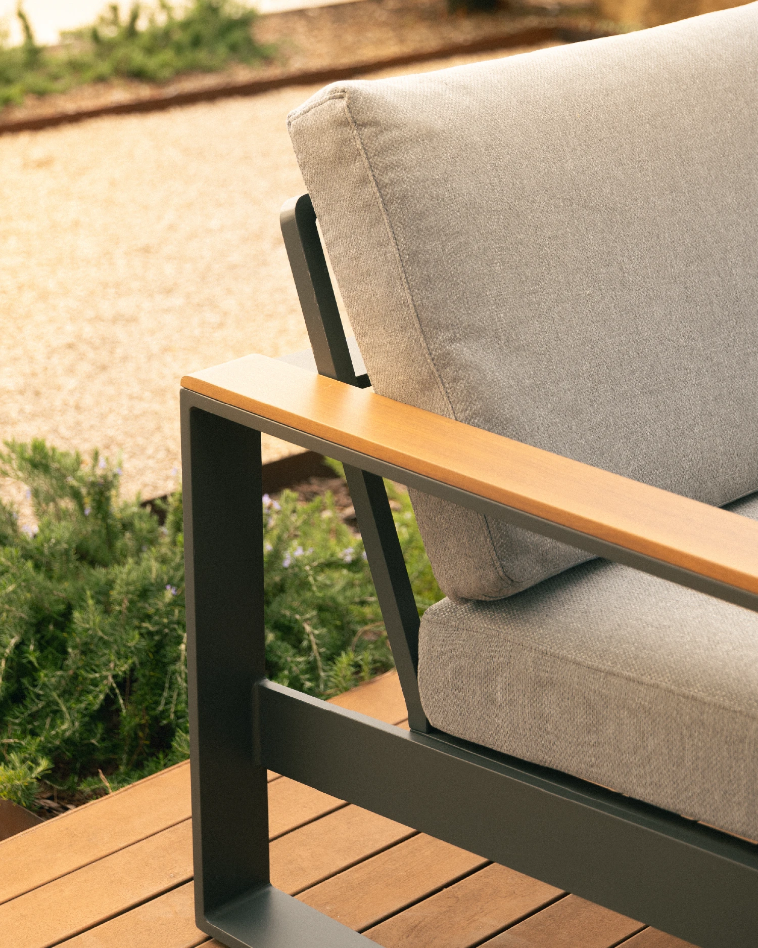 Divano da esterno in alluminio antracite con cuscino grigio 3 posti