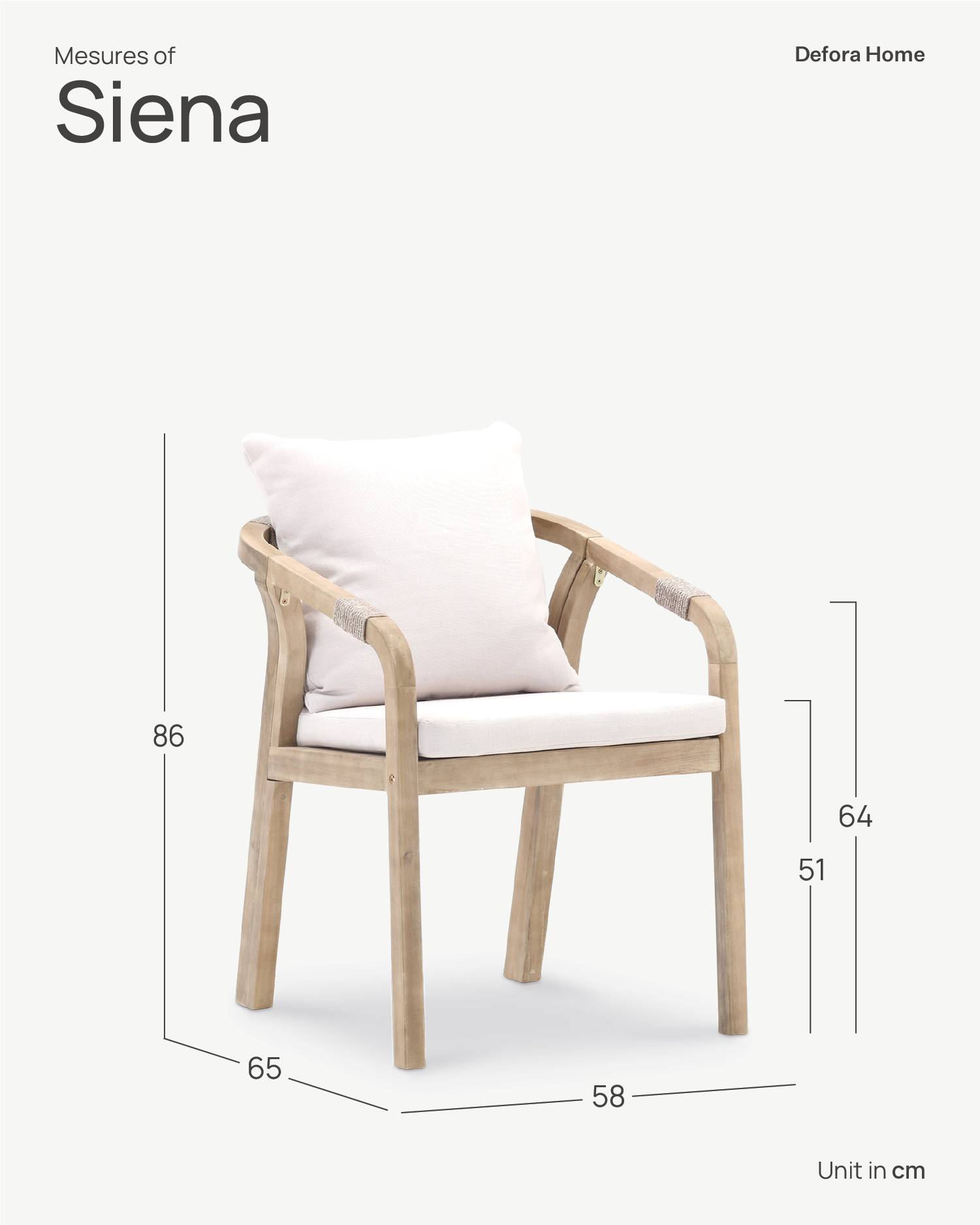 Se procura uma cadeira de jardim que combine estilo, durabilidade e conforto, a cadeira de exterior em madeira bege e corda é a escolha perfeita. Descubra a coleção completa da Siena e escolha as peças de design mais especiais para combinar no seu espaço exterior.
