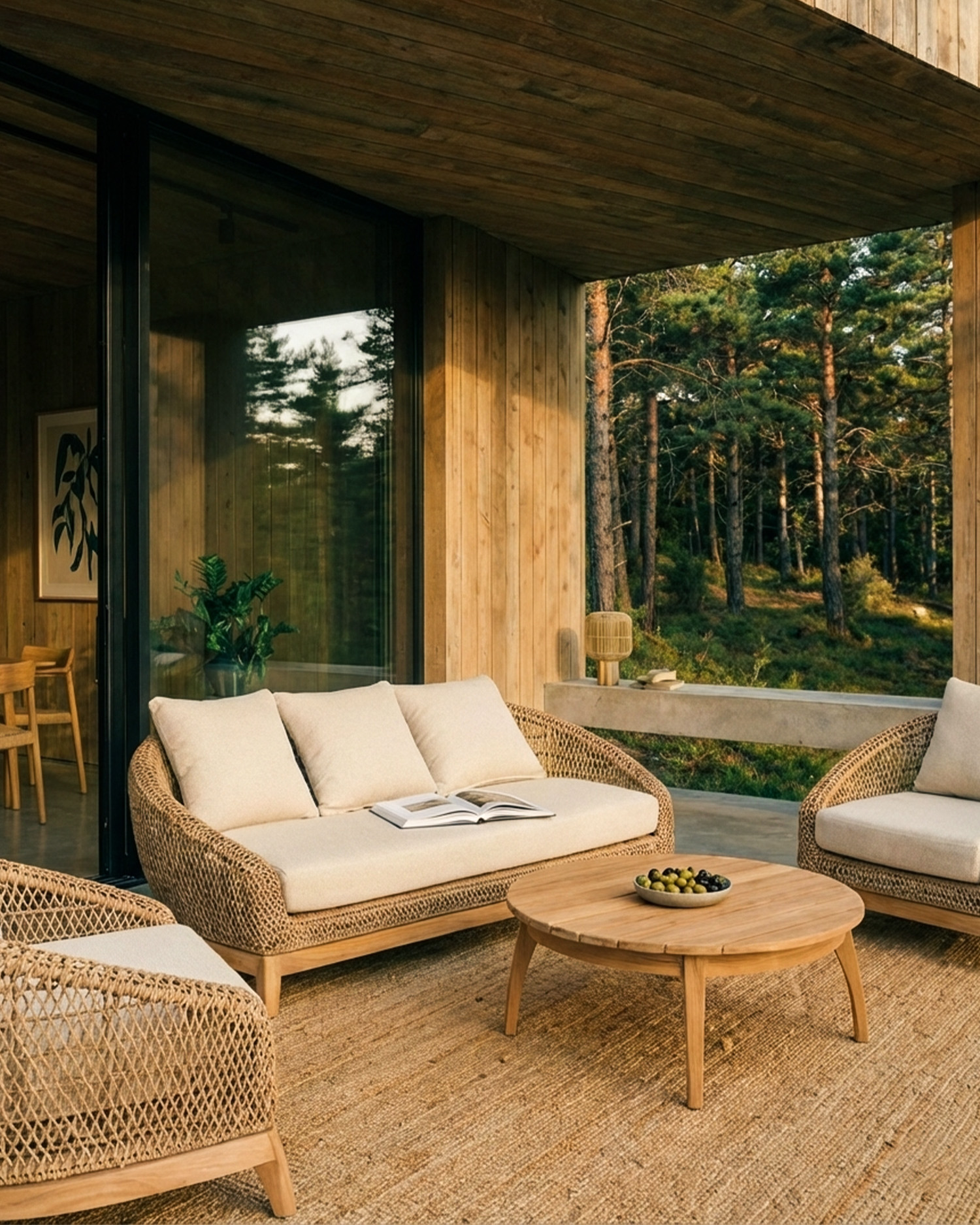 A coleção Zante é feita com materiais premium concebidos para o ar livre. A estrutura em madeira de teca e alumínio em combinação com corda sintética de rattan de 4,8 mm da prestigiada marca alemã Rehau, conferindo volume e transparência à coleção. Tudo isto cria uma família espetacular de produtos, com formas muito orgânicas e ergonómicas.