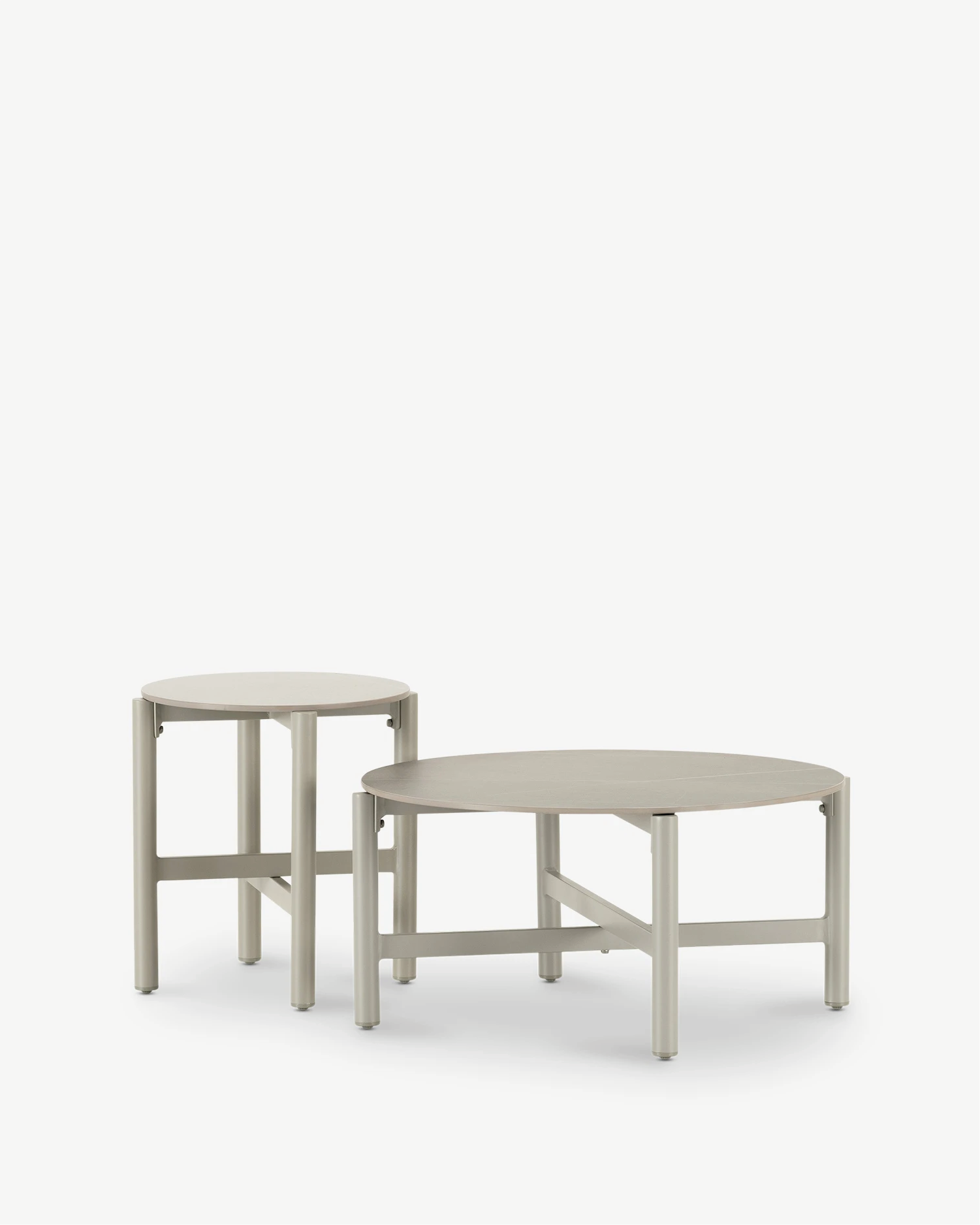 Conjunto de 2 mesas de jardim baixas imitação de pedra bege