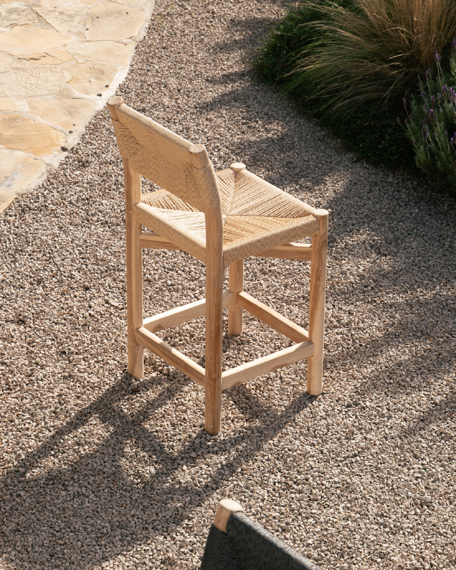 Stol iz tikovine in bež ratana